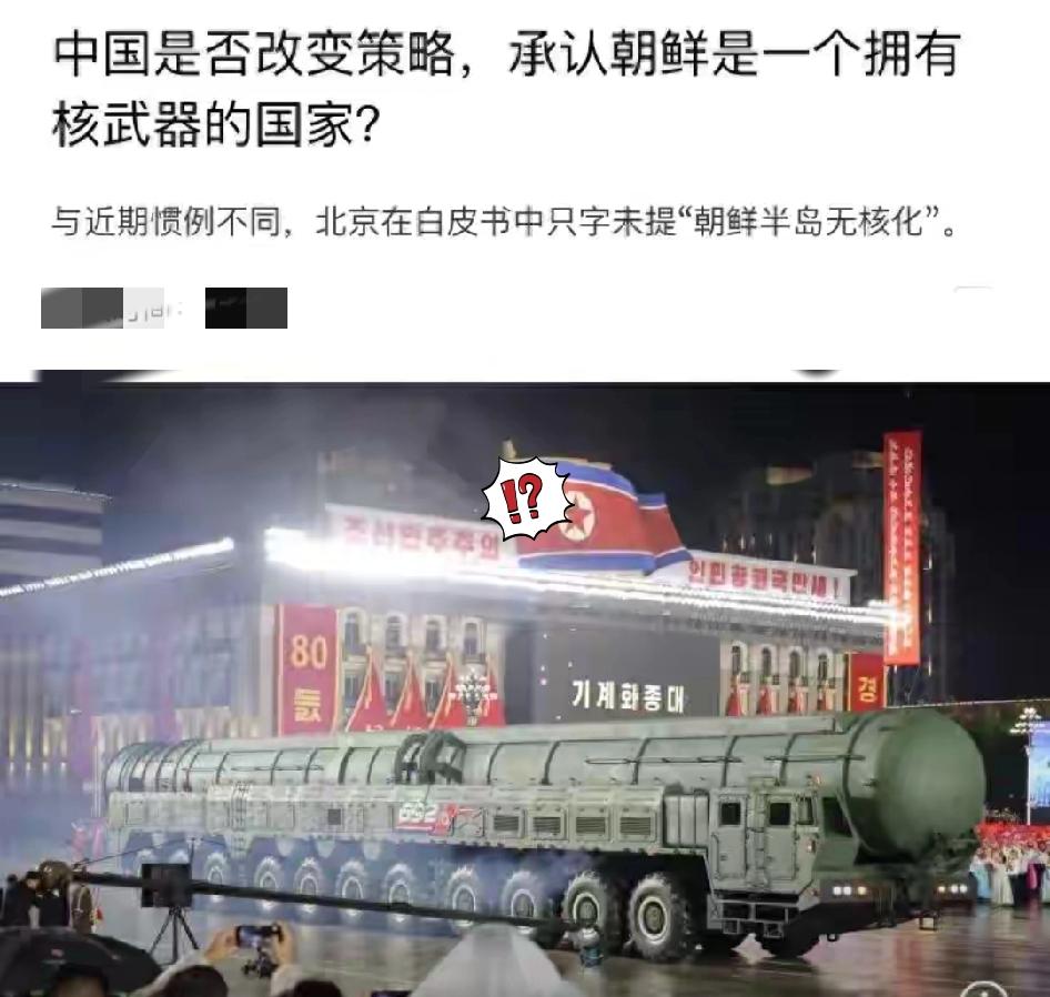 中方白皮书删除“半岛无核化”表述,不是对朝鲜核发展“松绑”,而是戳破了东北亚地缘博弈的真相! 这绝非20年的“让步”,而是对现实的清醒正视——朝鲜核力量早已写入宪法,洲际导弹能覆盖美本土,拥核已成既定事实。另一边韩美要造核潜艇,美日韩军事绑定升级,半岛平衡早被打破。 中国的调整,是从“理想目标”转向“务实解决”,不纠结于难实现的无核化口号,转而推动政治对话。这可把日本高市早苗政府急坏了,毕竟其扩军的核心借口就是“应对朝核威胁”。 本质上这是大国外交的理性转向,不回避问题才有可能解决问题。你觉得这一调整会让半岛局势更缓和还是更紧张?朝鲜半岛冷战 朝鲜半岛 朝鲜白皮书 朝鲜半岛危机 朝韩半岛局势 朝鲜核武器路线 朝鲜战备