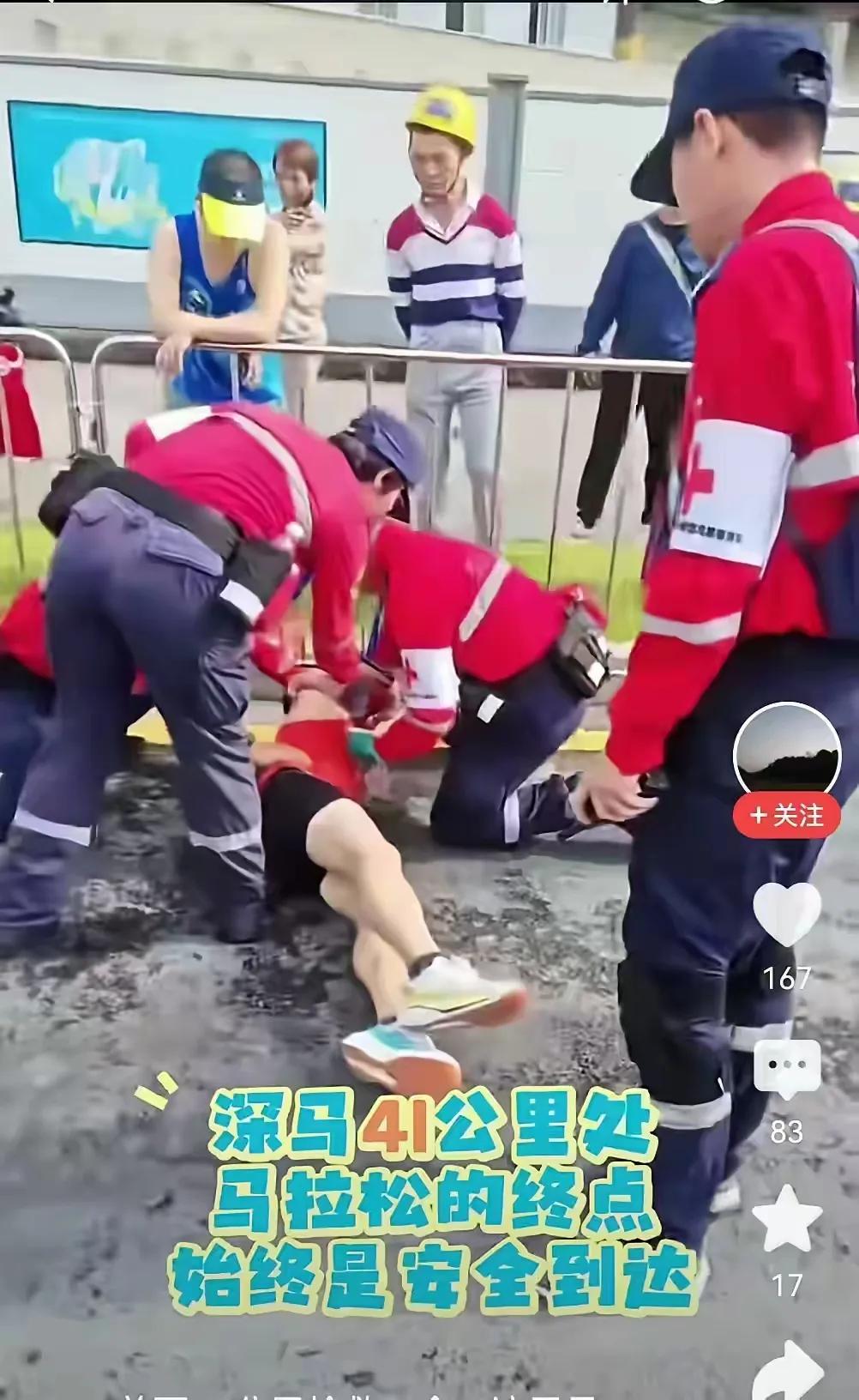 知道为什么好几个城市取消马拉松了吗? 11月7日的深圳马拉松,两名男子分别在半马和全马临近终点处倒地,众人赶紧对他们施救,好在救援及时,成功脱险。 马拉松是一个极限运动。好多人错误地认为马拉松是一个可以人人参与的大众健身项目,其实不然,即使你可以跑下来一个完整的马拉松,也不是说你可以参加马拉松竞速。 你理智地想一想:跑步的目的,究竟是健康,还是突破?不管怎么说,安全必须放在第一位,其他都是浮云。