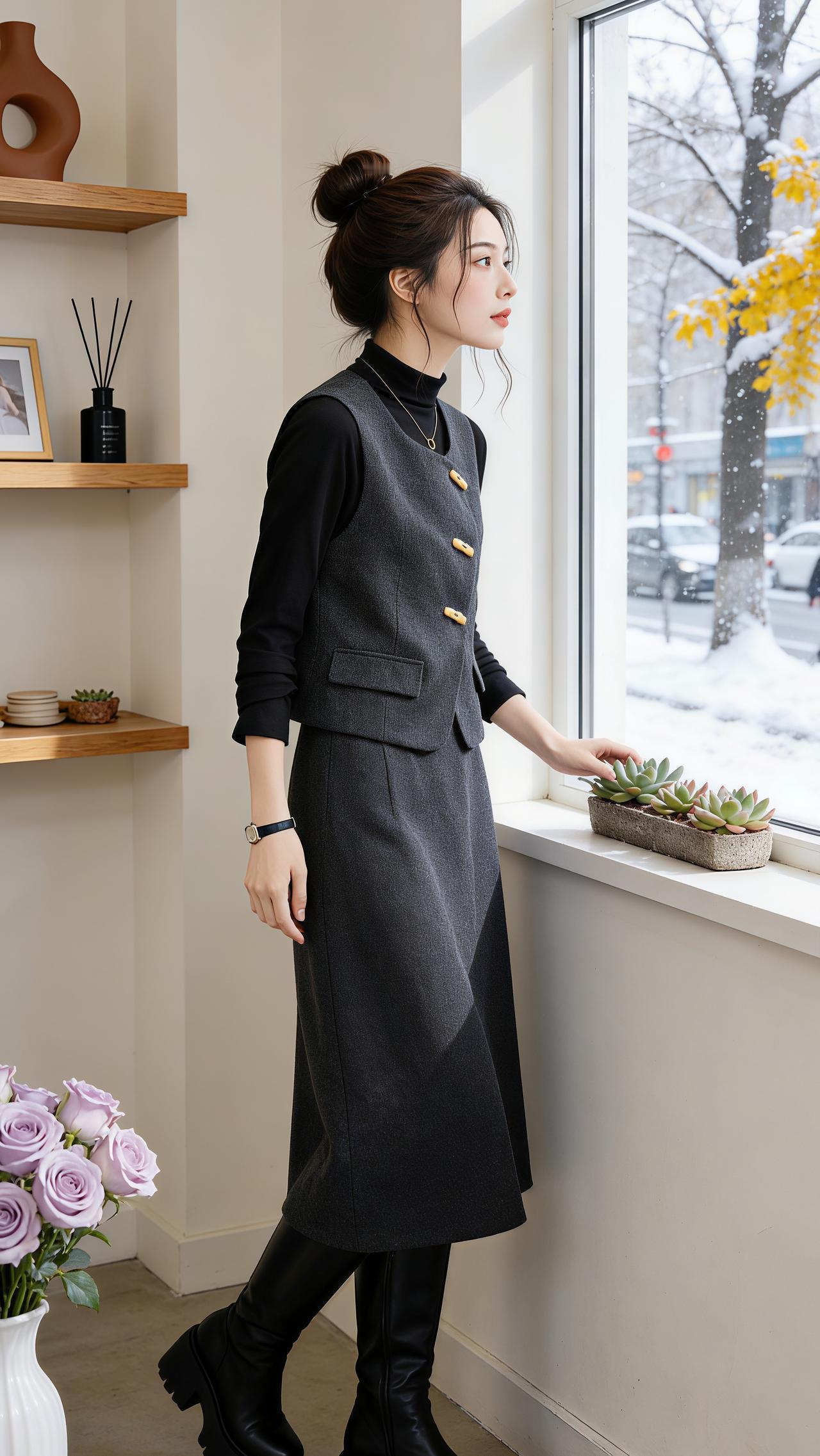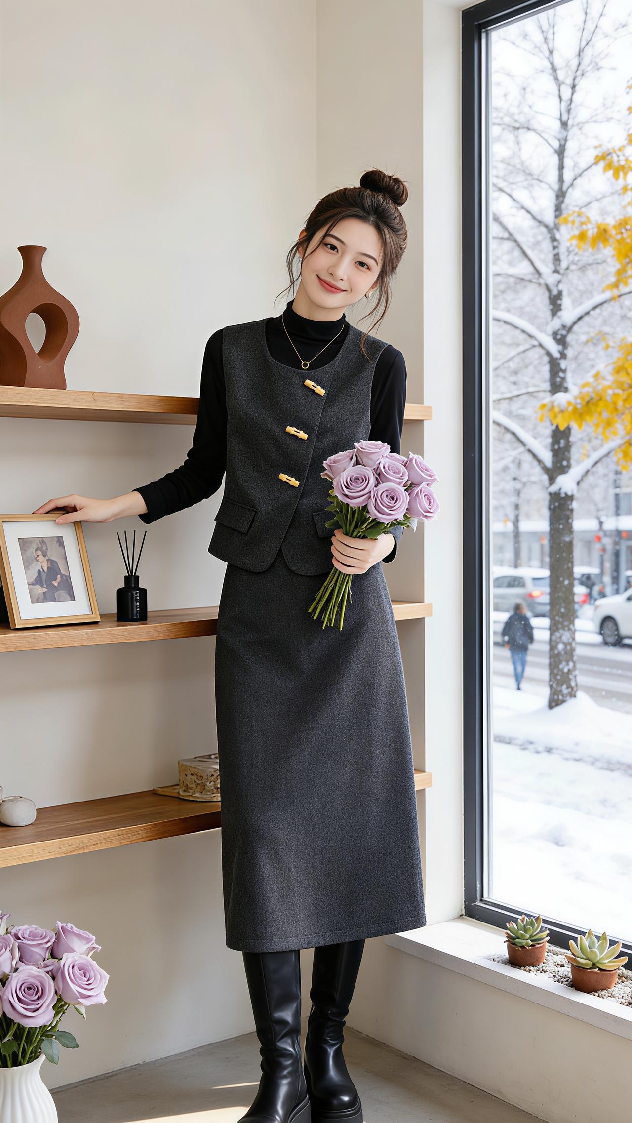 女装 马甲针织连衣裙两件套 两件套 衣服穿搭 针织套装