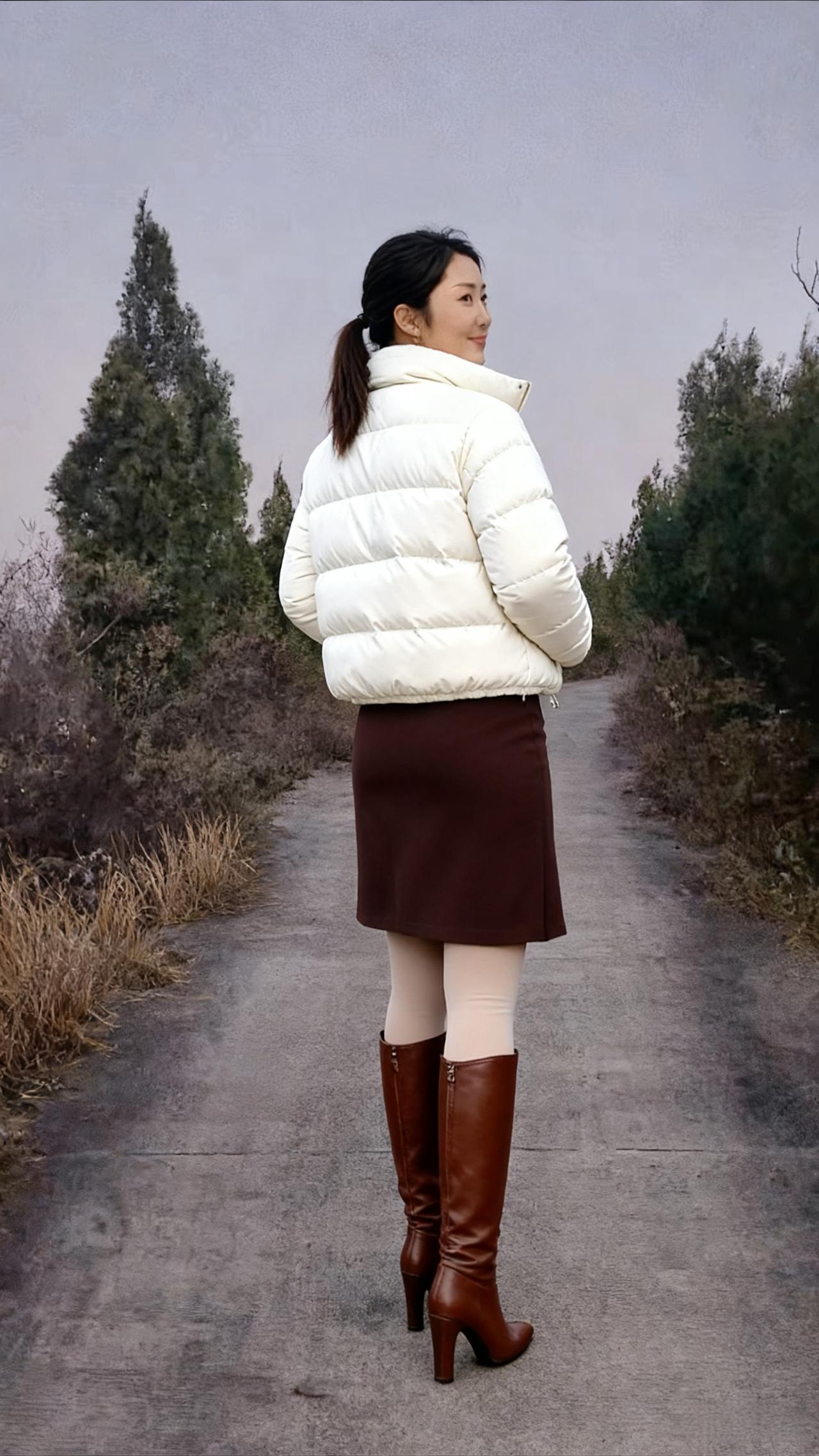 白色羽绒服裹着冬日的寒凉 她的背影,走在灰扑扑的小路上 棕色的裙摆在风里轻晃 像一枚飘舞的枫叶,不肯束手归降 ~ 长靴敲着路面,声音清脆 是独行者的鼓点回响空旷 马尾辫在颈后,系着未说的话 她不回头,目光望向前方的迷茫 ~ 草木枯瘦,衬得她的身影愈发挺拔 羽绒服的蓬松,藏着抵御寒冬的勇气 路的尽头是模糊的树影 她的脚步,却踩出了清晰的远方