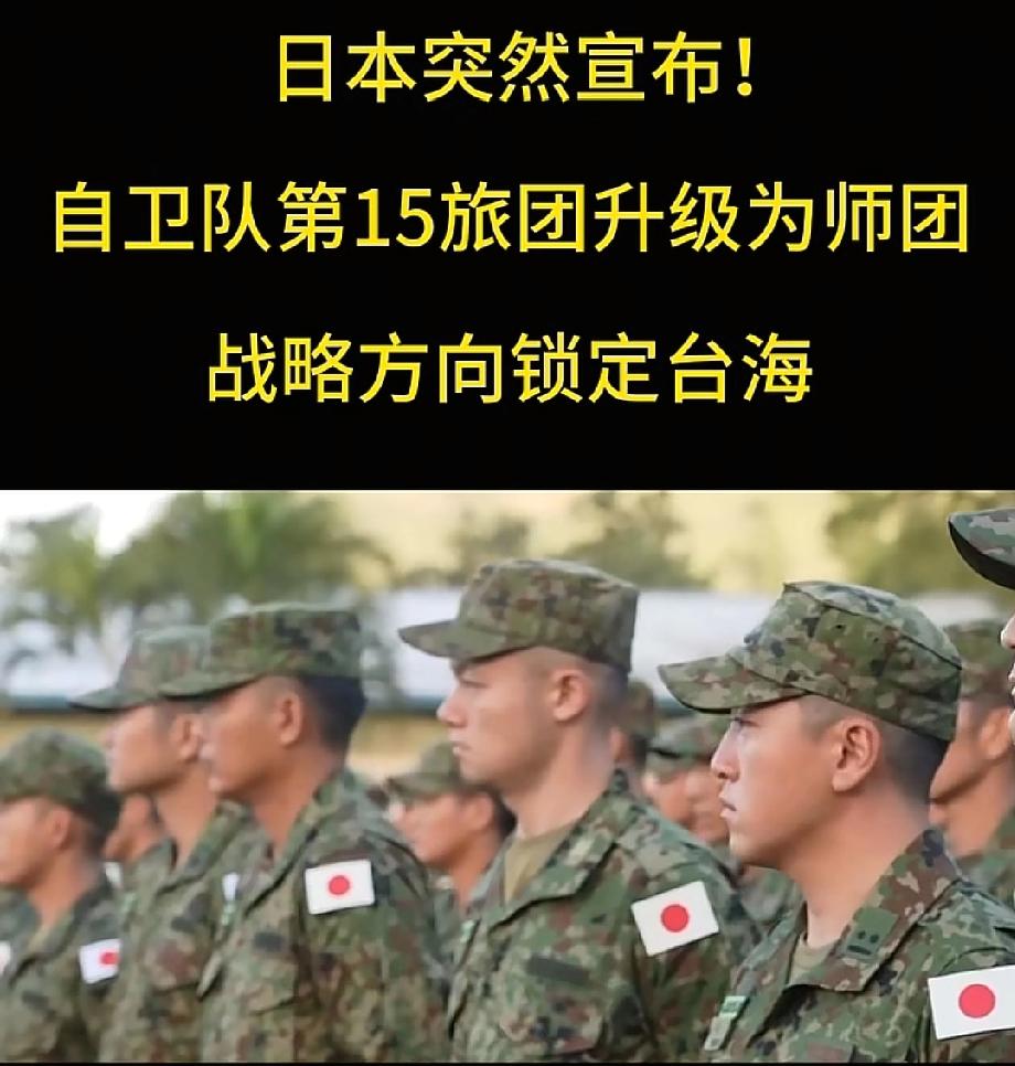警惕!警惕! 日本动作不断! 日本自卫队的第15旅团最近有大动作,直接扩编成为了师级编制,目标很明显就是台海方向。最近这段时间,日本在军事上的动作可不少,尤其是西南诸岛那边,部署调整得特别密集。不管是部队编制的扩大,还是武器装备的更新换代,就连专门的特种作战部队都在组建,连阵地都在扩建,这些动作都不是随便做的,明眼人都能看出来,就是冲着台海去的。 驻扎在冲绳的这支部队,人数从原来的2400人增加到了3000人,作战单位也从2个团扩充到了3个团,而且他们还打算给部队配上无人两栖战车呢。更让人担心的是,日本在离台湾很近的与那国岛上,不仅部署了防空导弹,还在修建空军基地,弹药库也在往多了建。他们现有的12式反舰导弹,射程能超过1000公里,这样一来,宫古海峡就完全在它的覆盖范围之内了。 日本防卫副大臣直接说“强化西南地区的防卫是现在最要紧的事”,这话里的意思很明显,就是想插手台海的事。不过可别忽略了,咱们国家早就拿出了联合国“敌国条款”这把“尚方宝剑”,要是日本敢在这里瞎折腾、动歪心思,那肯定会自食恶果的。毕竟在咱们国家实实在在的军力优势面前,日本搞出的这点小打小闹,就跟螳螂挡车似的,根本起不了什么作用。大家觉得,这次日本这么折腾,真的敢在台海问题上踩红线吗? 日本扩军备武 日本扩军动向 防卫省自卫队 日自卫队 日本扩军危机 日本海军自卫队 海上自卫队