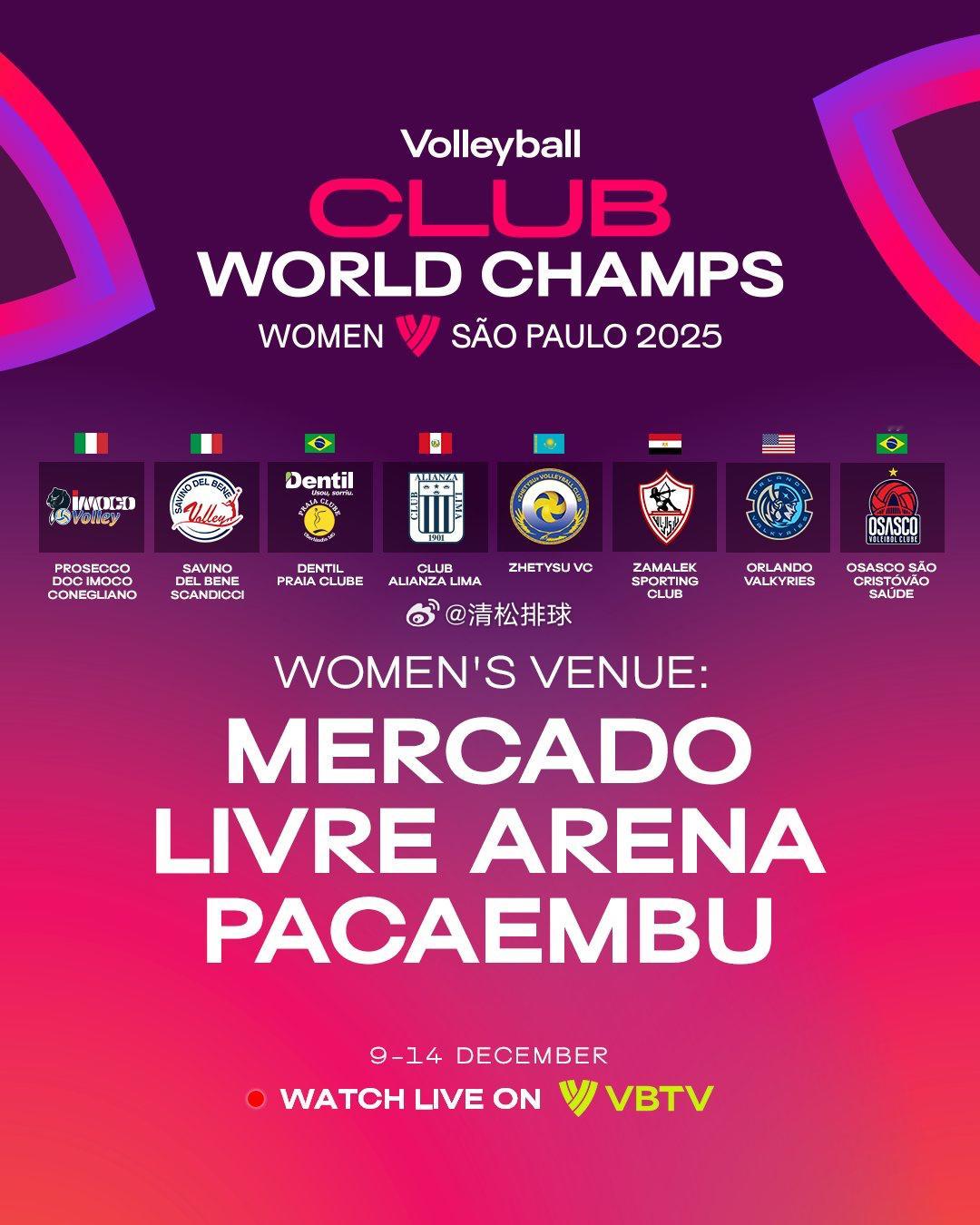2025年女排世俱杯参赛球队A组:哈萨克斯坦泽蒂苏🇰🇿、意大利斯坎迪奇🇮🇹、秘鲁利马联盟🇵🇪、巴西奥萨斯克🇧🇷B组:意大利科内利亚诺🇮🇹、美国奥兰多🇺🇸、巴西乌贝兰迪亚海滩🇧🇷、埃及扎马雷克🇪🇬清松带你看排球2025年女排世俱杯