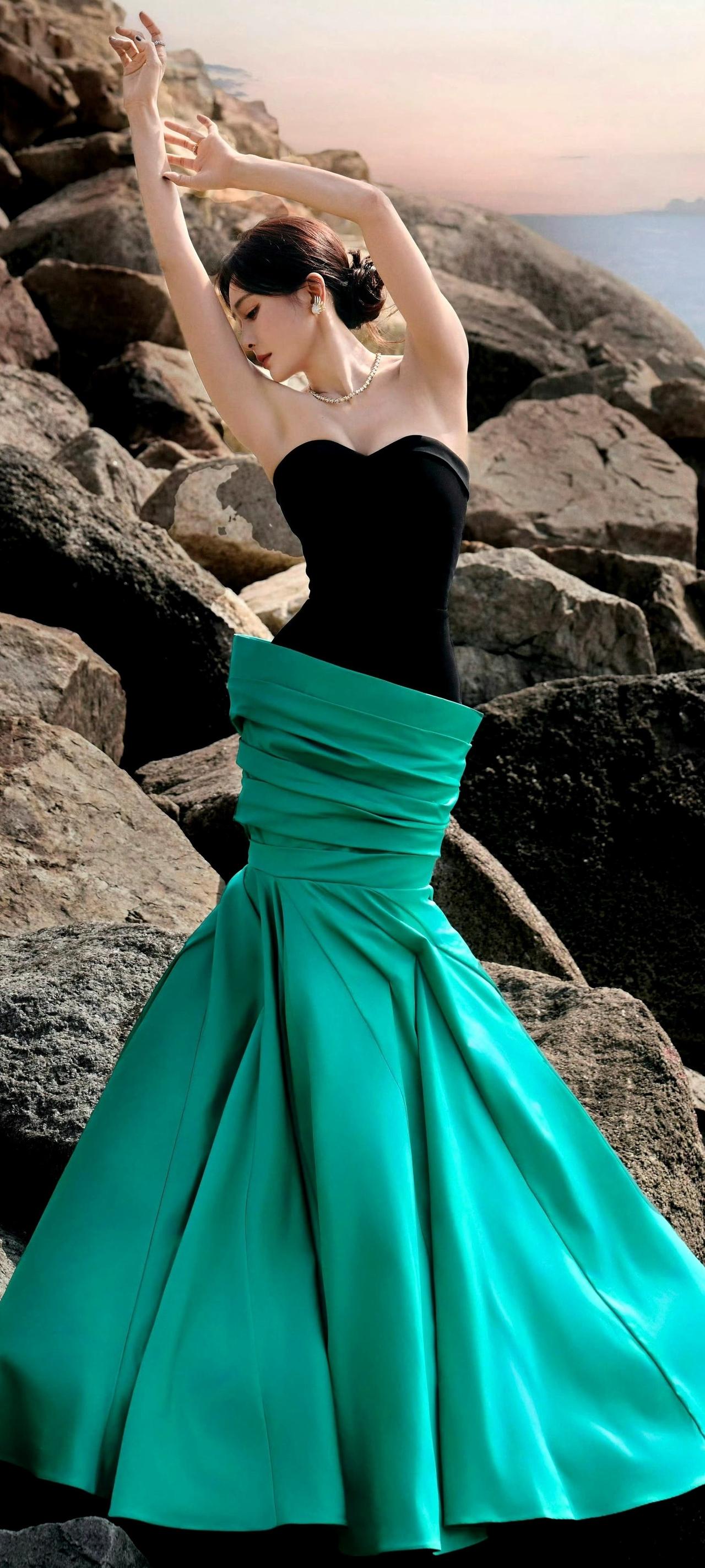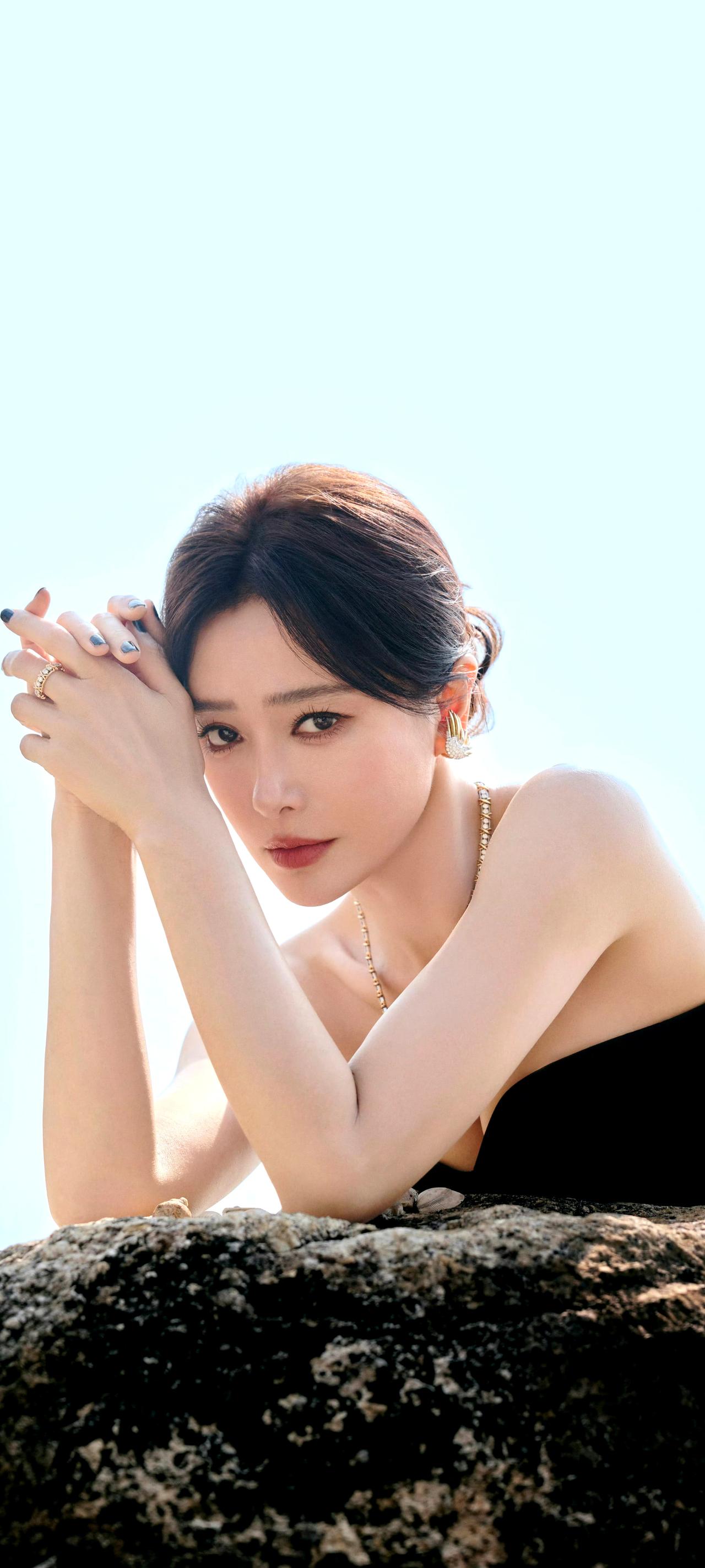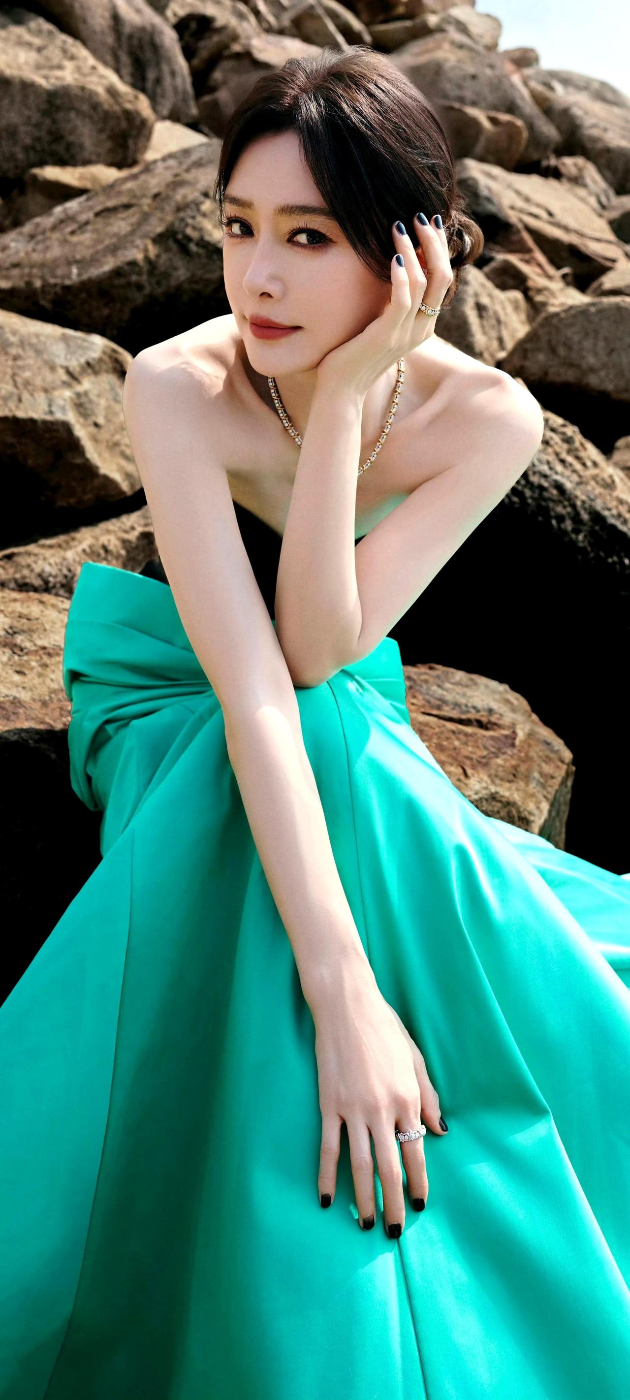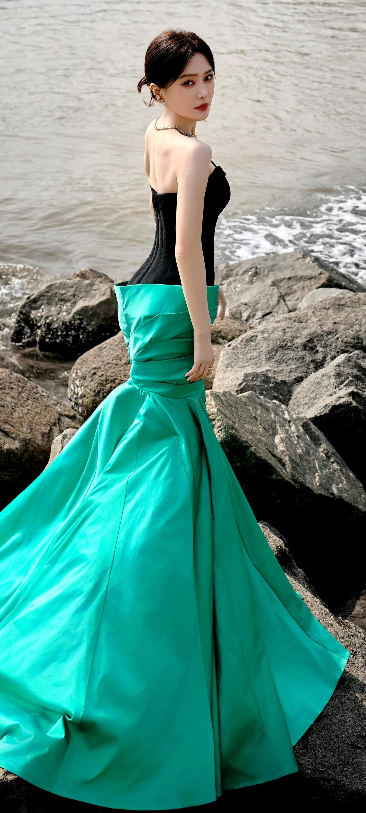 40+秦岚美到失语!海边黑绿撞色礼服+礁石背景,冻龄氛围感直接封神✨秦岚 秦岚身材 明星穿搭 气质女明星