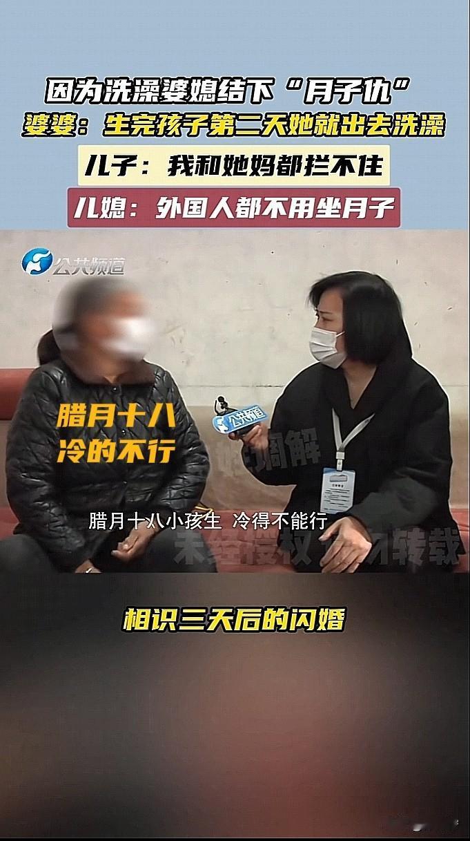 河南驻马店一女子刚生完孩子就去逛街!件件事情都让人傻眼!两人相识3天就扯证,新婚燕尔的两人沉浸在二人世界不能自拔,时间一晃,两人的爱情结晶就诞生了。没想到,女子体质好的离谱,昨个在医院“生孩子”,今个就回家,明个就在大街上溜达,网友评“这不就是先天生孩子圣体嘛”! 婆婆抱着孩子高兴的嘴角压都压不下去,欢欢喜喜伺候女子坐月子。结果女子回来才休息了一晚,就闹着要出去逛街,去澡堂子里洗澡。婆婆那是赶紧阻拦,把自己坐月子的经验,是倾囊相述,没成想这一通操作,倒是把女子惹得不痛快,直接怼了起来“外国人都是不用坐月子的”。 婆婆没法子了,就只能找来自己的儿子,结果儿子是个“耙耳朵”,男子说一句,女子能回十句。男子也无能为力,又想到了“丈母娘”,电话一过去,丈母娘直接拒绝,说女子脾气大,自己也管不了。最终母子俩人也没能劝住女子,女子是得偿所愿。高兴的在“寒冬腊月”里去逛街,根本就不觉得自己还在“坐月子”,后面还去了没有暖气的澡堂子里洗了一个澡。 更绝的是,这女子还因为婆婆和老公的阻拦,记恨上了,搞得婆媳不和,夫妻离心。这家人就通过节目组找来了调解员,希望一家人能和和睦睦的生活。最后,也希望她们一家能和好如初! 河南生宝宝风俗 驻马店孕妈 驻马店婚嫁 坐月子