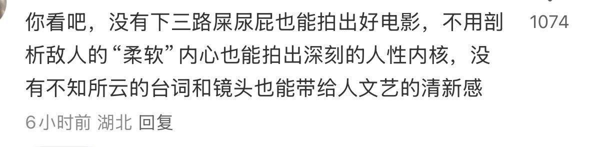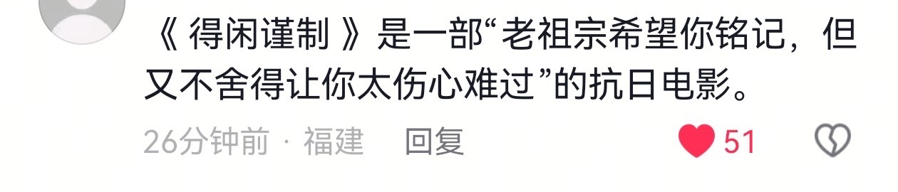 看得闲谨制笑着笑着就哭了,我看完的时候就说了,感觉编剧在隐藏所有的泪点,我们不是在煽情的镜头和悲壮的配乐渲染下泪目,是由衷的心疼同胞先辈,并敬佩他们的抗战精神!