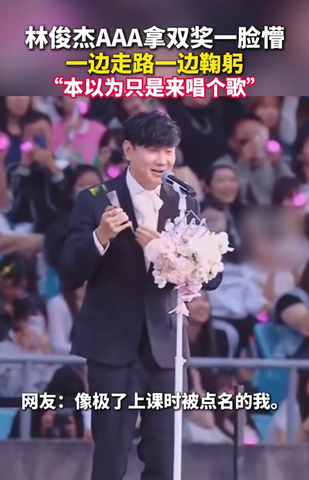 林俊杰拿奖比粉丝还懵!看了林俊杰在AAA颁奖礼上的获奖反应,不笑出声又忍不住心疼?本来只来当个表演嘉宾唱首歌,结果突然拿了双奖,全程一脸茫然,边走边鞠躬像走错场。 上台时他还没缓过神,说话都带着点懵圈,坦言完全没准备,根本没想到自己会获奖。台下粉丝都在尖叫,他却还在确认“真的是我吗”,这反差萌直接戳中大家。 出道这么多年,他早就不是靠奖项证明自己的歌手了。但这份面对荣誉时的纯粹和不知所措,恰恰说明他一直把重心放在音乐上,而非名利场的得失。 现在圈子里太多刻意营销和套路,林俊杰这种“无心插柳”的获奖瞬间,反而让人看到了音乐人最本真的模样——眼里只有舞台和音乐,其余都是惊喜。你被他这波“懵圈领奖”可爱到了吗?