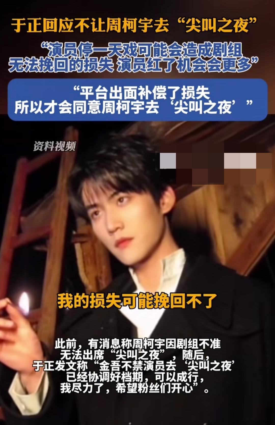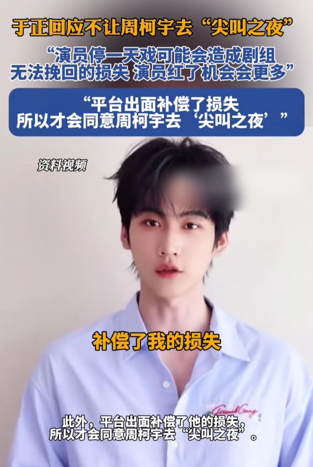 于正直播回应不让周柯宇去尖叫之夜,一句话就让人懂了艺人的身不由己:“演员停一天戏