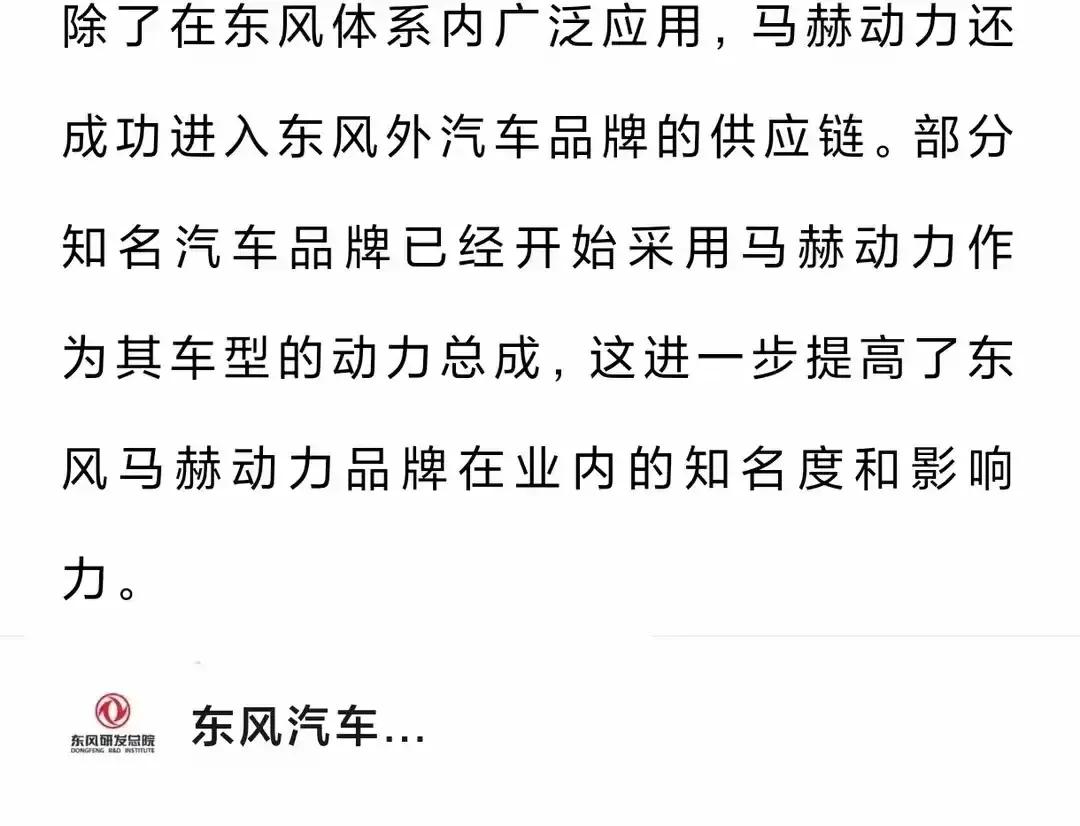 东风马赫动力起飞了? 12月8日,东风马赫动力再度刷新行业纪录,全新1.5T混动专用发动机以48.09%的最高有效热效率获中汽中心“能效之星”权威认证,成为行业首款热效率突破48%的混动汽油发动机,彰显了东风自主研发动力系统领跑国际一流行列的硬核实力动力。 注意,是行业首款48.09%热效率的汽油插混发动机。插混、插混,汽油机、汽油机。 [太阳]马赫动力已形成马赫G、马赫PHREV、马赫E三大平台,涵盖纯燃油动力、混动、纯电等全技术路线,已先后斩获6次“中国心”十佳动力、6次世界十佳奖项,10余款产品获“能效之星”认证;马赫超级越野混合动力系统、东风马赫首款2.0T混动专用发动机等产品接连获奖,形成技术百花齐放的格局。 东风马赫首款2.0T混动专用发动机东风马赫B20TDE纵置混动专用发动机,凭借强劲的动力输出与卓越的高原适应性通过中汽研高海拔严苛认证,成功斩获“高原动力之星”这也是东风马赫系列发动机第二次获得这一权威认证。 首台东风马赫动力 2.0T 飞行发动机交付仪式近日在东风汽车研发总院举行。今年 4 月,由东风汽车研发总院自主研发的马赫动力 1.5TD 发动机已率先完成首个低空无人机项目地面大功率联调,发动机各项性能全面达成客户需求。7 月,该机型成功完成试飞,目前已与多家飞行器企业达成深度合作。 东风马赫动力不仅供应东风公司乘用车车型,还有第三方采购了?(图五)