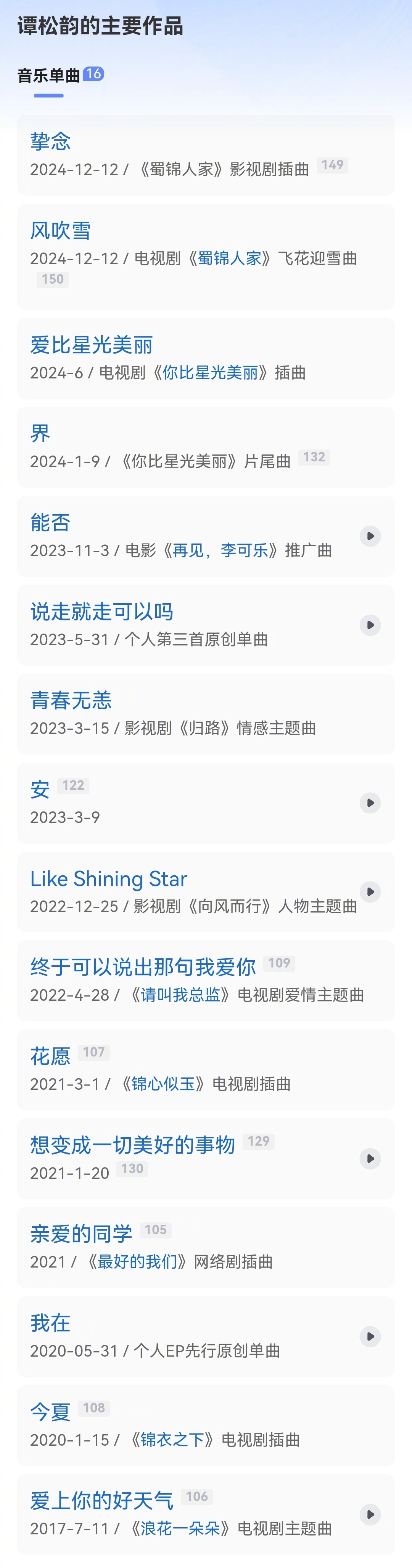谭松韵要开演唱会了谭松韵唱过《锦衣之下》《最好的我们》《你比星光美丽》《蜀锦人家》等不少她自己主演剧的OST,小规模演出没问题