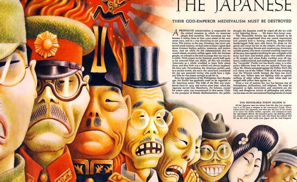 日本想让你看到的日本人 VS 真实的日本人【图一来自日本秋叶原的宣传画,图二来自二战时美军的宣传画】