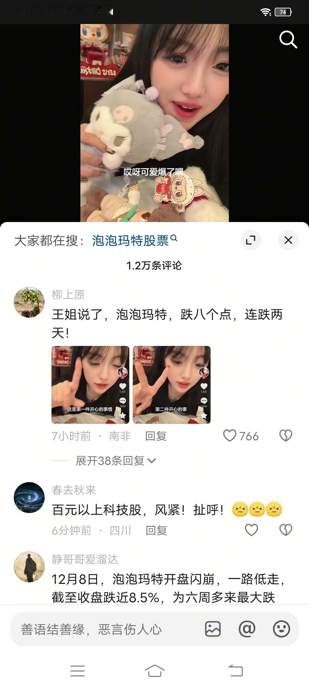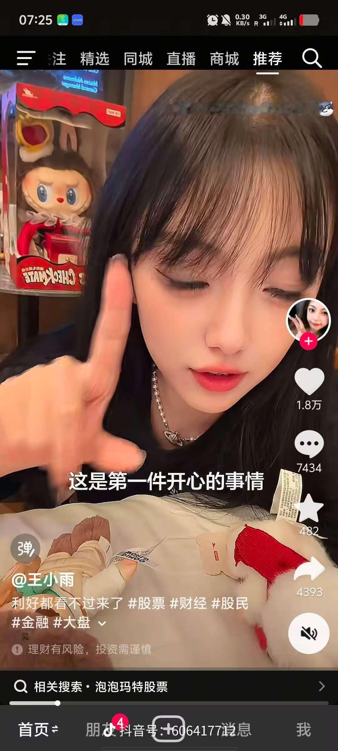 财经博主王小雨“反向锦鲤”、“金融百草枯”的称号再次被实锤! 12月7日她在视频里面向大家展示了她在新加坡买到的8个泡泡玛特玩偶,今天泡泡玛特港股真的不多不少跌了8个多点!那些手中持有泡泡玛特股票的网友估计今天都要恨死这个王晓雨了…… 评论区有网友更是神神叨叨的表示: “王姐说了,泡泡玛特,跌八个点,连跌两天”,那不是明天还要跌! 也有网友表示:王姐这么搞下去,以后谁敢娶她哦,我真的都有点为她担忧了![捂脸][捂脸][捂脸]