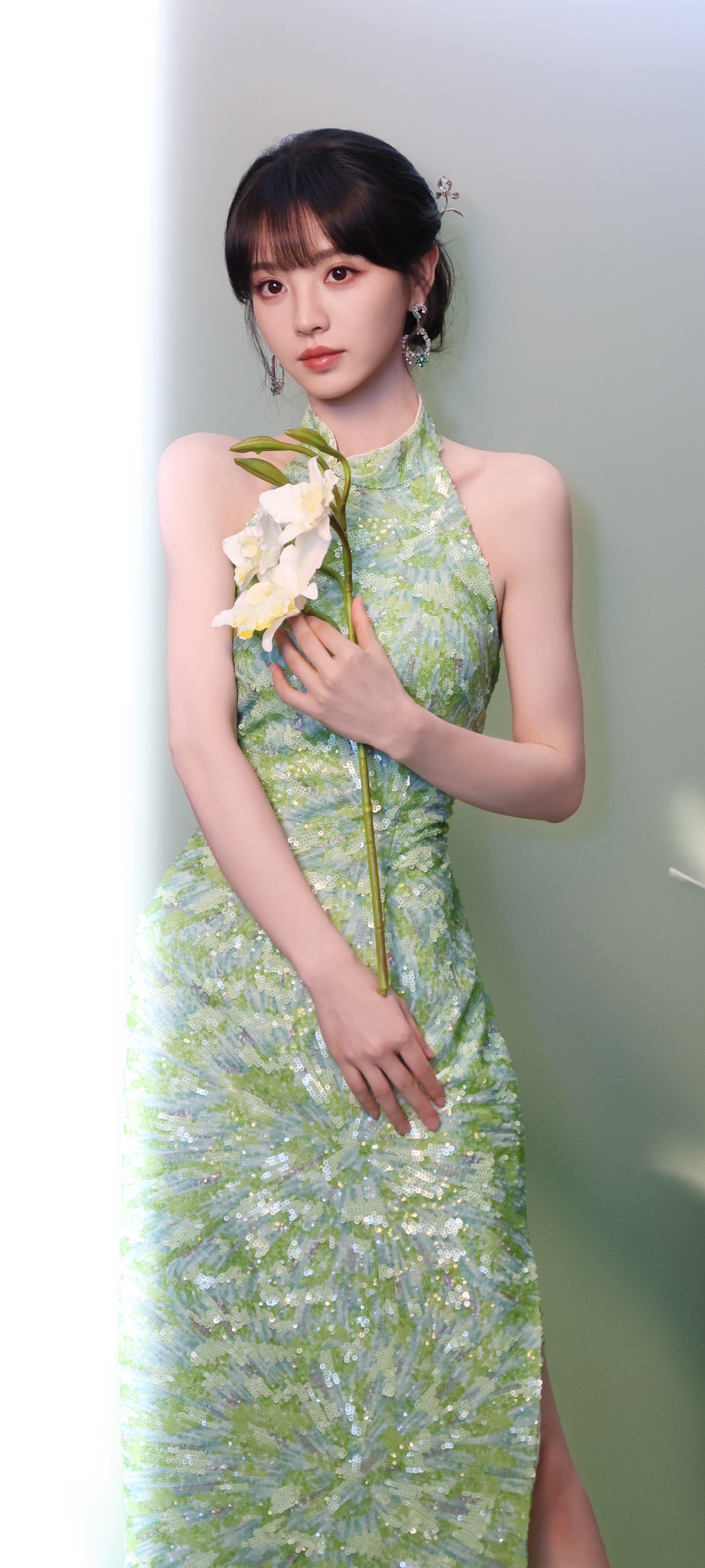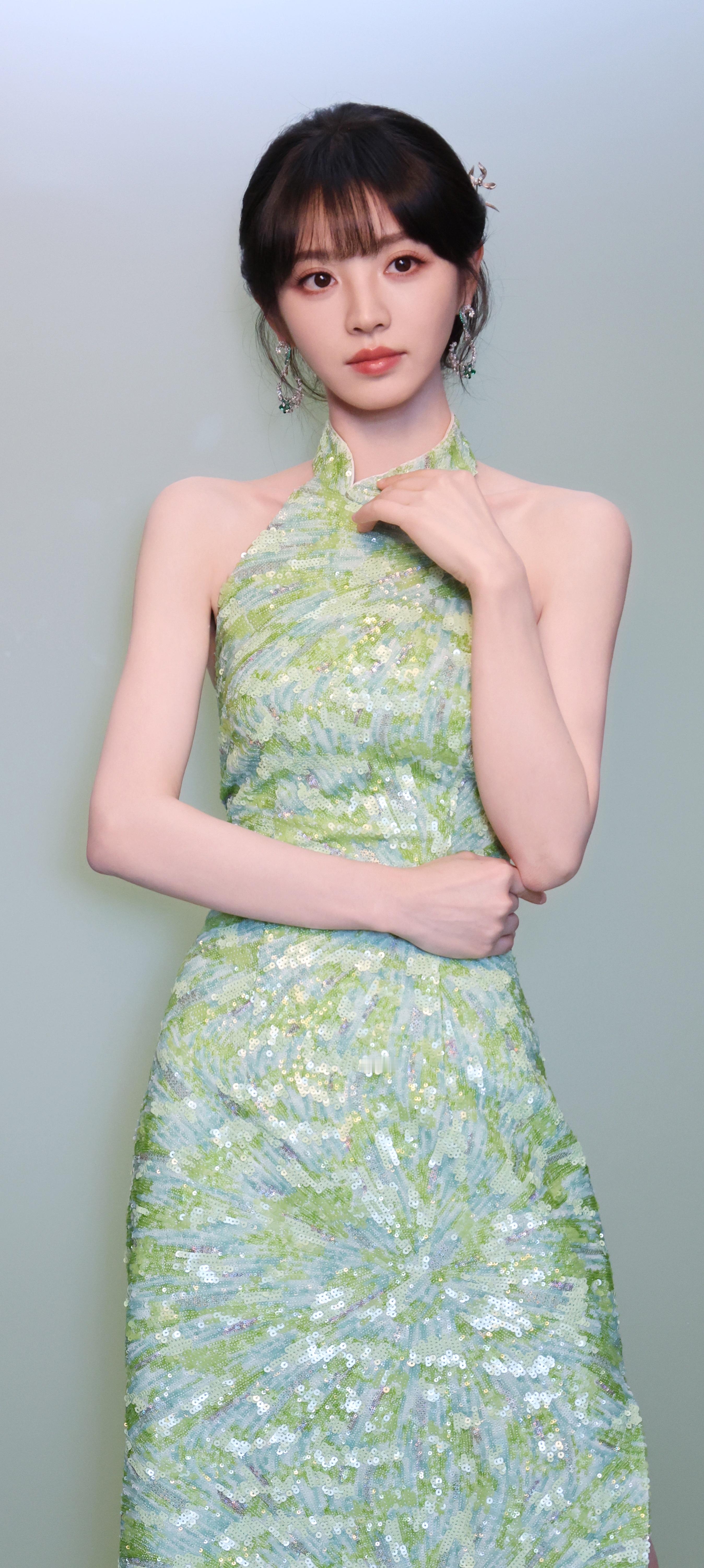 田曦薇绿色挂脖旗袍 田曦薇旗袍穿搭全屏壁纸,江南妙龄少女甜美上线。 田曦薇
