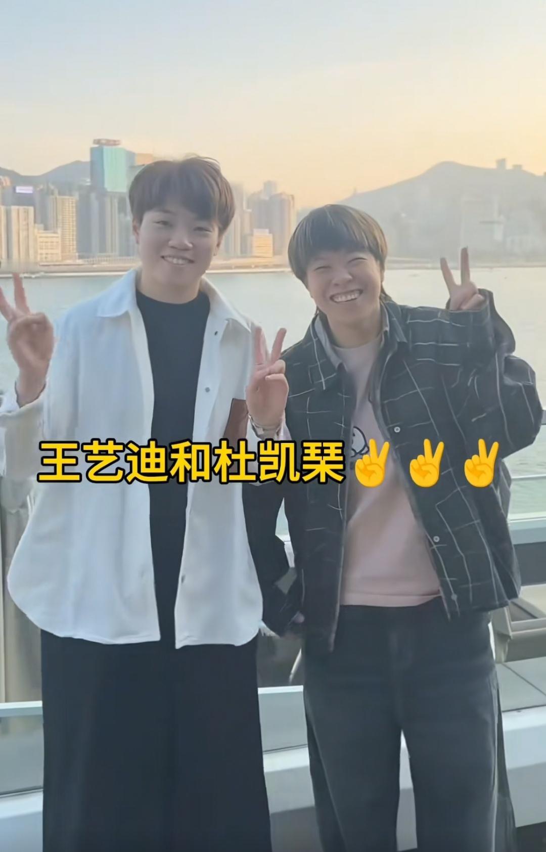 刚忙完四川的比赛,国乒运动员们就赶到了香港,准备参加香港的总决赛。 王楚钦、林诗栋、王艺迪、孙颖莎以及国外选手都已经抵达香港了。王艺迪和杜凯琹还聚在香港一起逛了,王艺迪穿着牛仔裤、黑色格子衬衫,内搭粉色衣服。 杜凯琹穿着白色衬衫,黑色裤子,内搭黑色衣服。 王艺迪和杜凯琹两人比手势开心的拍合影。