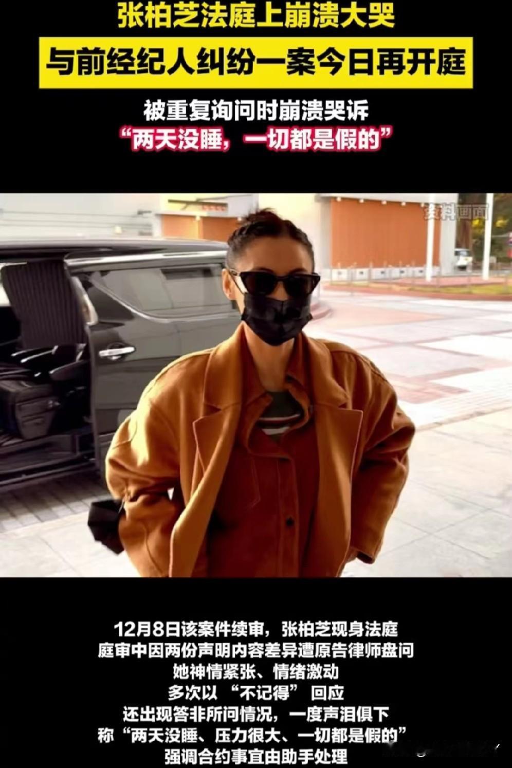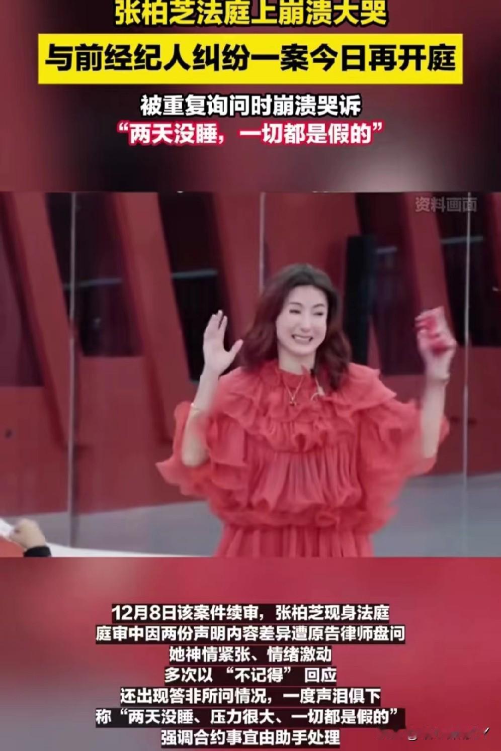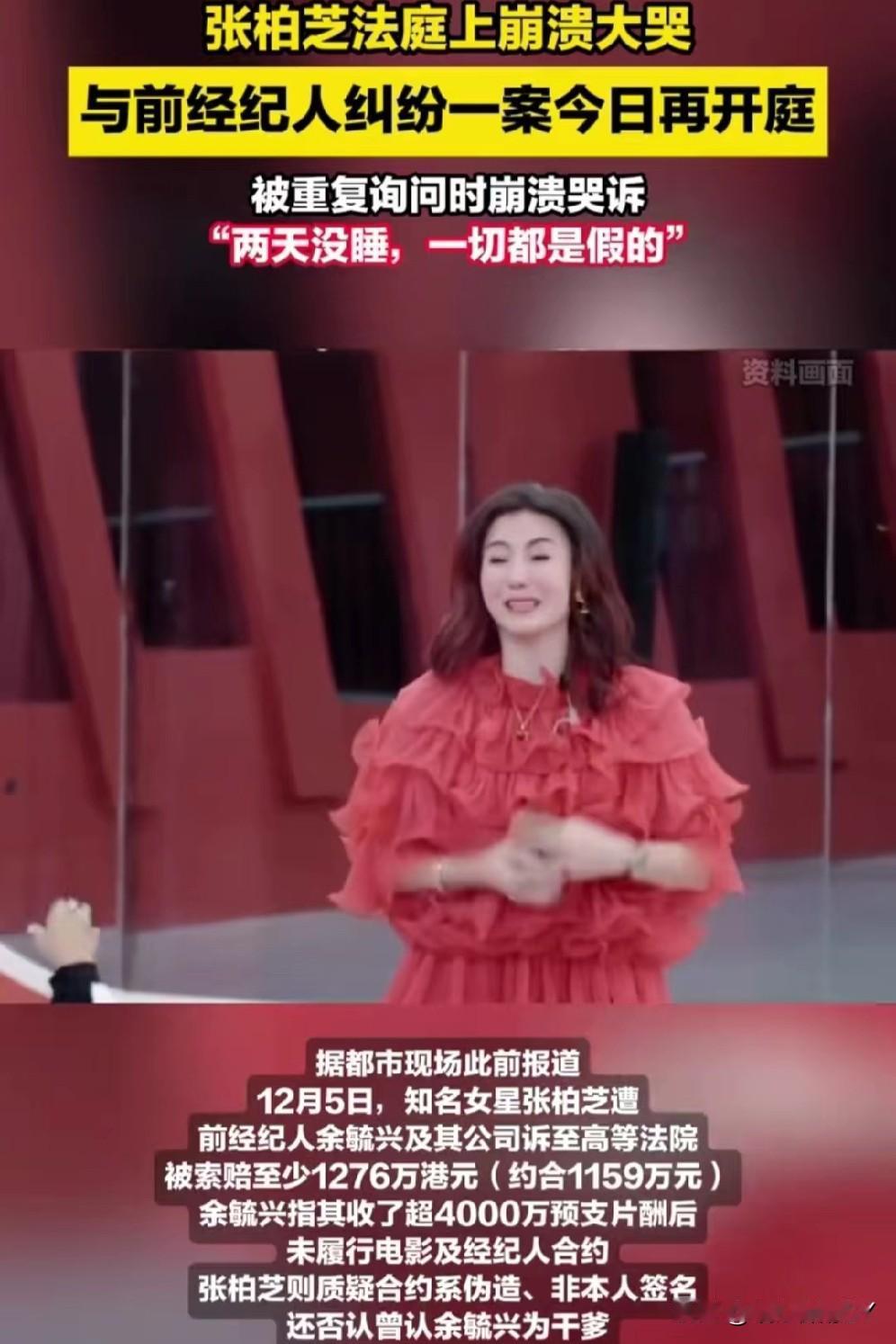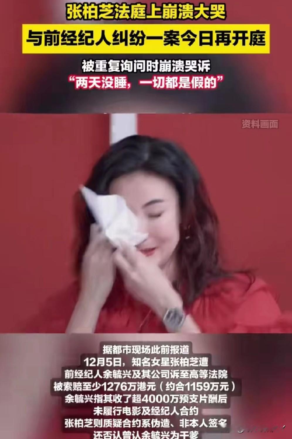 张柏芝现身法庭时,身着一条粉色长裙,妆容精致、造型亮眼,却难掩憔悴神情。 庭审过程中,她情绪失控,崩溃大哭,一边擦拭眼泪,一边坦言自己两天未曾合眼,还反复说着“一切都是假的”,那场面令人揪心。 此事源于他与前经纪人俞毓兴的合约纠纷,对方指控她收4000多万港元预支片酬后未履约,索赔约1159万元;张柏芝否认违约,称合约伪造、签名非本人所签,还指出对方伪造文件,双方积怨已久。 此次公开庭审上的失态表现,与她平日展现的强势形象反差极大,网友纷纷留言表达心疼,同时也好奇背后究竟发生了什么,期待后续能有更多细节曝光。 张柏芝