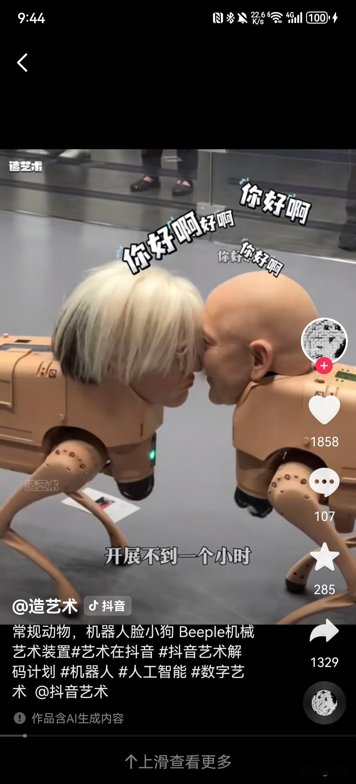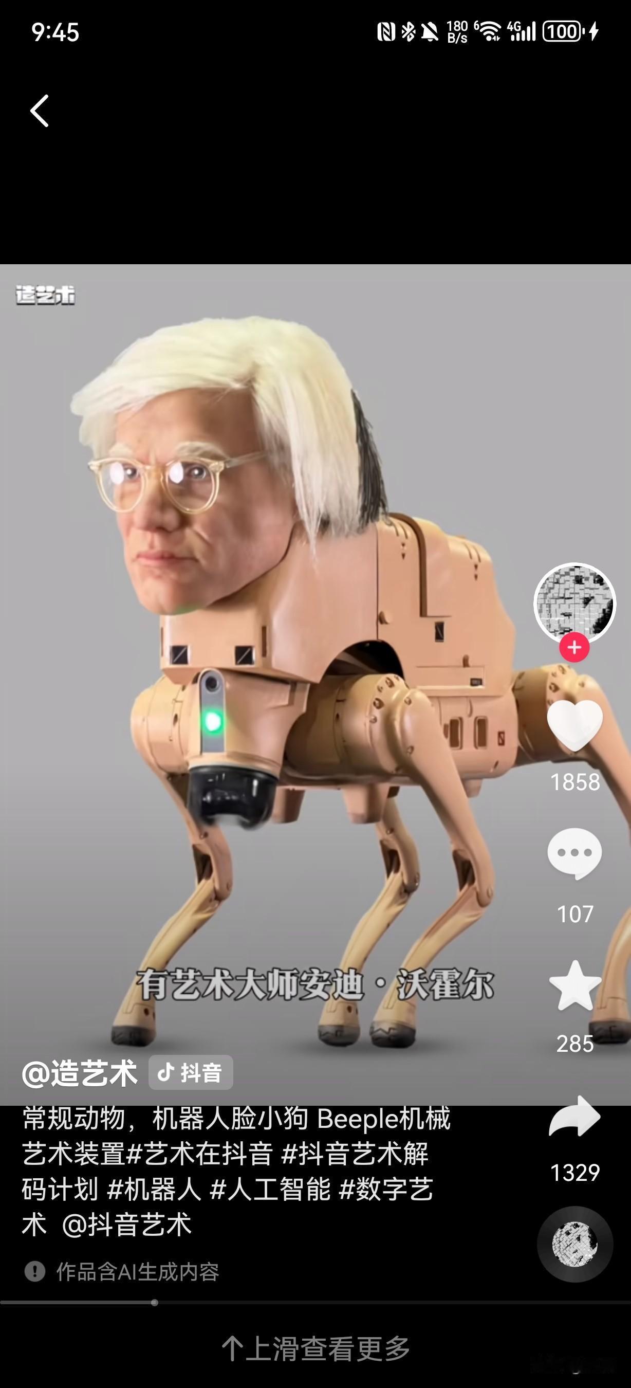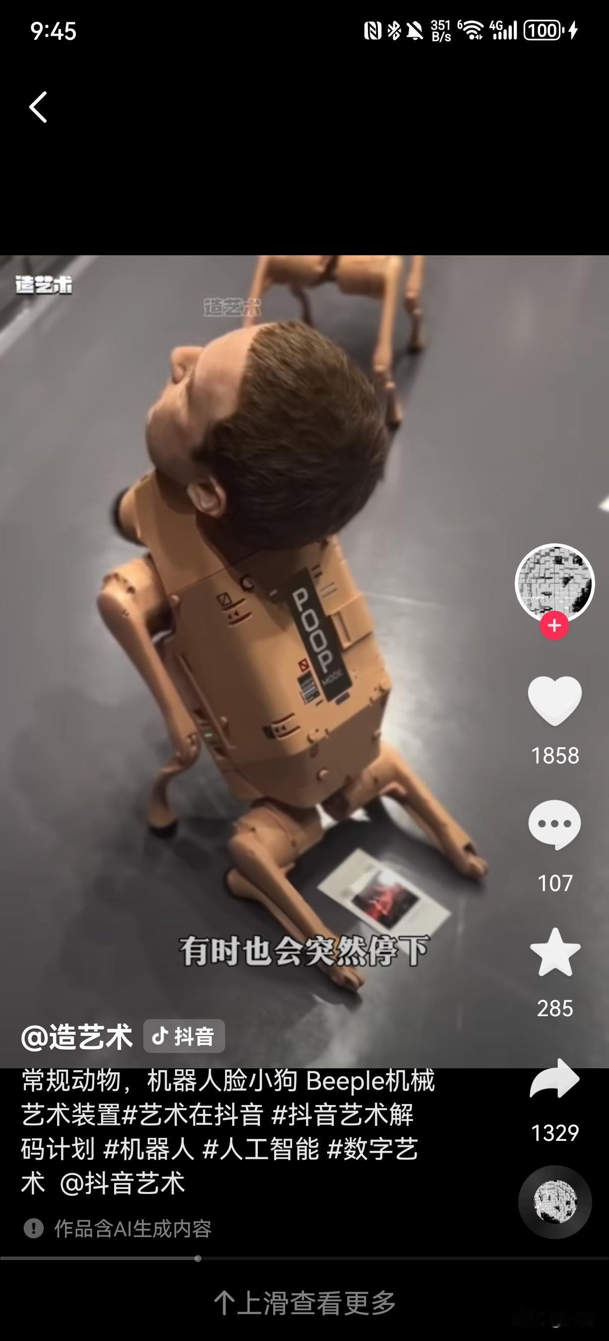 美国数字艺术家Beeple于2025年12月迈阿密海滩巴塞尔艺术展上推出的《常规动物》(Regular Animals)作品。作品核心是一批搭载超写实头部的机器狗,头部形象涵盖马斯克、贝佐斯、扎克伯格等科技巨头,毕加索、沃霍尔等艺术大师,还有Beeple本人及谷歌联合创始人谢尔盖·布林等商界精英。这些机器狗会在展厅围栏内自主游荡、躲避障碍并拍摄参观者,还能从尾部“排泄”出带对应人物风格的打印照片,比如马斯克款是黑白滤镜,毕加索款是立体主义风格,扎克伯格款则有元宇宙美学特质。特别的是,贝佐斯款机器狗被设定为“只看不拉”,且所有机器狗以每只10万美元的价格售罄,买家需允许作品继续巡展。