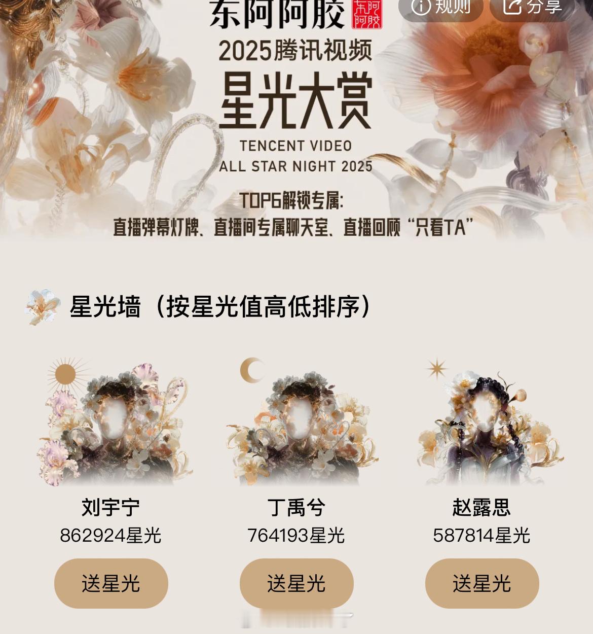 腾讯视频星光大赏星光墙目前前三 刘宇宁 丁禹兮 赵露思