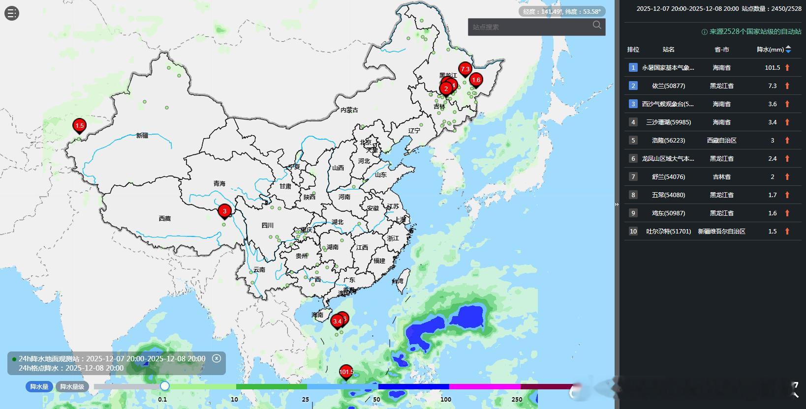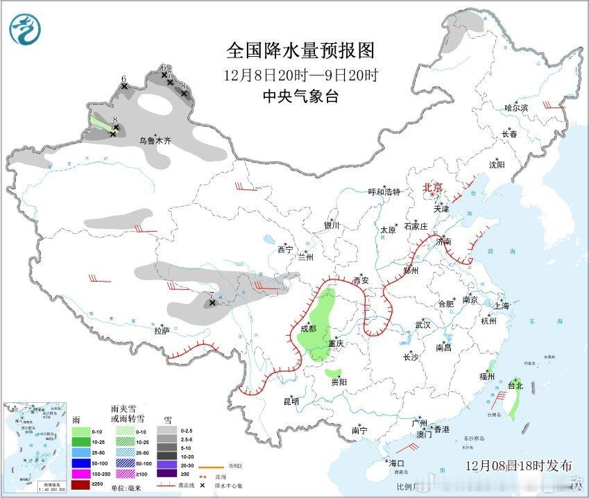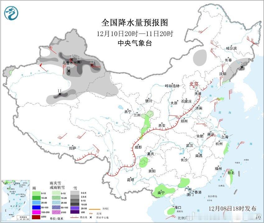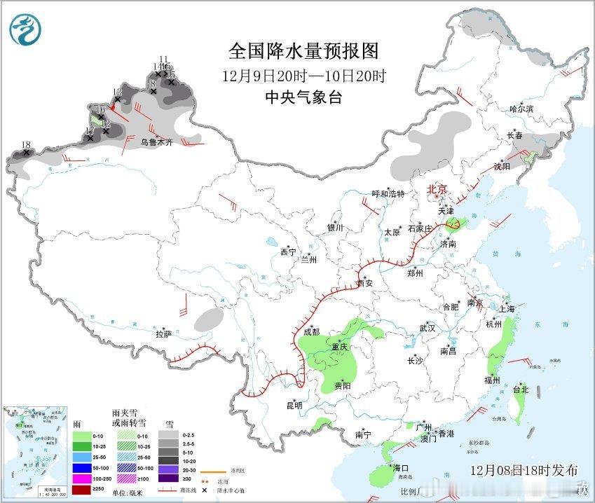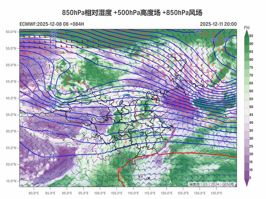 【雨雪】昨晚到今天,我国陆地上的降水不多,海南三沙的永暑礁,因为热带扰动的影响,出现101.5毫米的大暴雨。未来3天,新疆将出现强降雪。因为未来有高空槽和冷空气东移。这股冷空气实力强,而且是西路冷空气,携带了里海的水汽,高空槽前动力抬升作用叠加天山等地形抬升,因此降雪强度大。12月8日20时至9日20时,新疆北疆和南疆西部山区、西藏东部、青海南部等地部分地区有小雪或雨夹雪,其中,新疆阿勒泰地区、伊犁河谷、西藏东北部等地局地有中到大雪(5~8毫米)。12月9日20时至10日20时,新疆西部、内蒙古中东部、黑龙江北部、吉林东南部、辽宁北部、西藏东部等地部分地区有小到中雪或雨夹雪,其中,新疆北部等地部分地区有大到暴雪(10~18毫米),新增积雪深度4~8厘米,局地10~18厘米。12月10日20时至11日20时,新疆北部和东部、甘肃东部、内蒙古东部、河北北部、吉林东部、辽宁东部等地部分地区有小到中雪或雨夹雪,其中,新疆天山和昆仑山脉、吉林东部等地部分地区有大到暴雪(10~16毫米),24小时新增积雪深度2~6厘米,局地10厘米以上。之后冷空气继续东移,与暖湿气流交汇,西北地区东部、华北、黄淮北部、东北地区也将有大范围的降雪。这次陕西北部、山西、河北南部、河南中北部一带的降雪是最稳的,降雪强度大,并且也可能形成明显积雪。图7-9为700百帕-850百帕-925百帕的相对湿度预报。700百帕从孟加拉湾经过西南地区向北方输送水汽,最北端可达内蒙古河套。850百帕从南海和东海上有偏南风或东南风输送水汽北上。925百帕有偏东风输送黄海的水汽进入内陆。而辽宁和吉林东部,降需也是稳的。主要是黄海和日本海水汽输送上来。京津一带以及山东一带,后期要关注冷高压的位置和走向,有可能在近地面层形成干区侵入。因此这一带降雪有机会但还不是完全保证有。