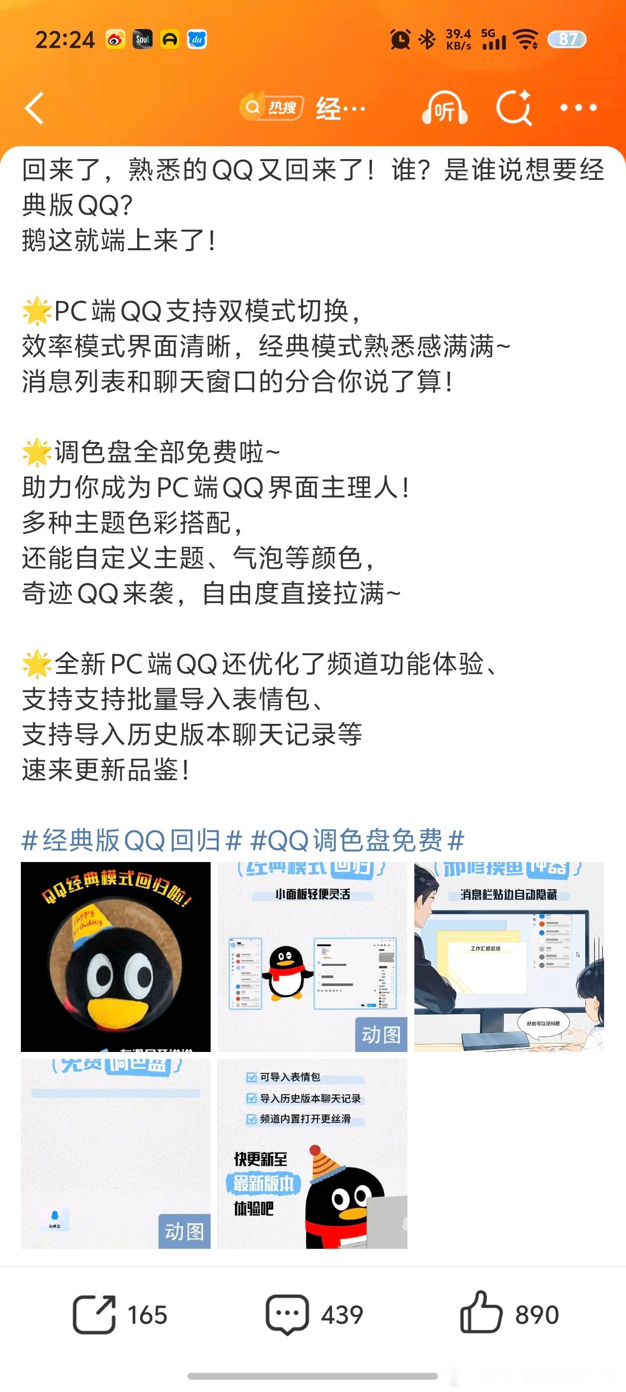 经典版QQ回归腾讯QQ经典版回归了,大家的青春又回来了。但是,我现在的QQ基本就是每天打个卡,用最多的还是微信,我身边很多朋友跟我一样。问一下,大家现在QQ用的多吗?