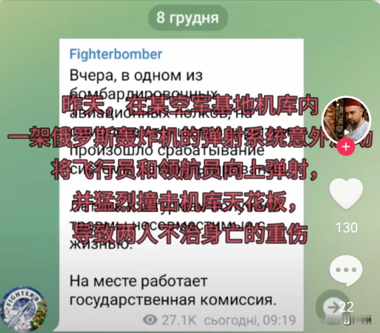 俄苏-34掩体内意外弹射致双亡…当地时间12月7日,俄军某轰炸机航空团一架停放在机库掩体中的苏-34战斗轰炸机毫无征兆地启动弹射系统,机上飞行员与领航员被瞬间弹向高空,径直撞向掩体钢筋混凝土顶棚,当场伤势过重身亡。 弹射座椅本是战机空中遇险时的保命装置,配备多重安全锁闭机制,地面静置状态下意外启动实属罕见,即便苏-34搭载的K-36DM弹射座椅号称具备零高度逃逸能力,也架不住零速度地面弹射的致命短板——缺乏飞行高度和速度支撑,降落伞根本无从展开,撞上坚硬顶棚的冲击力堪比直接坠地,两名机组人员连自救机会都没有。