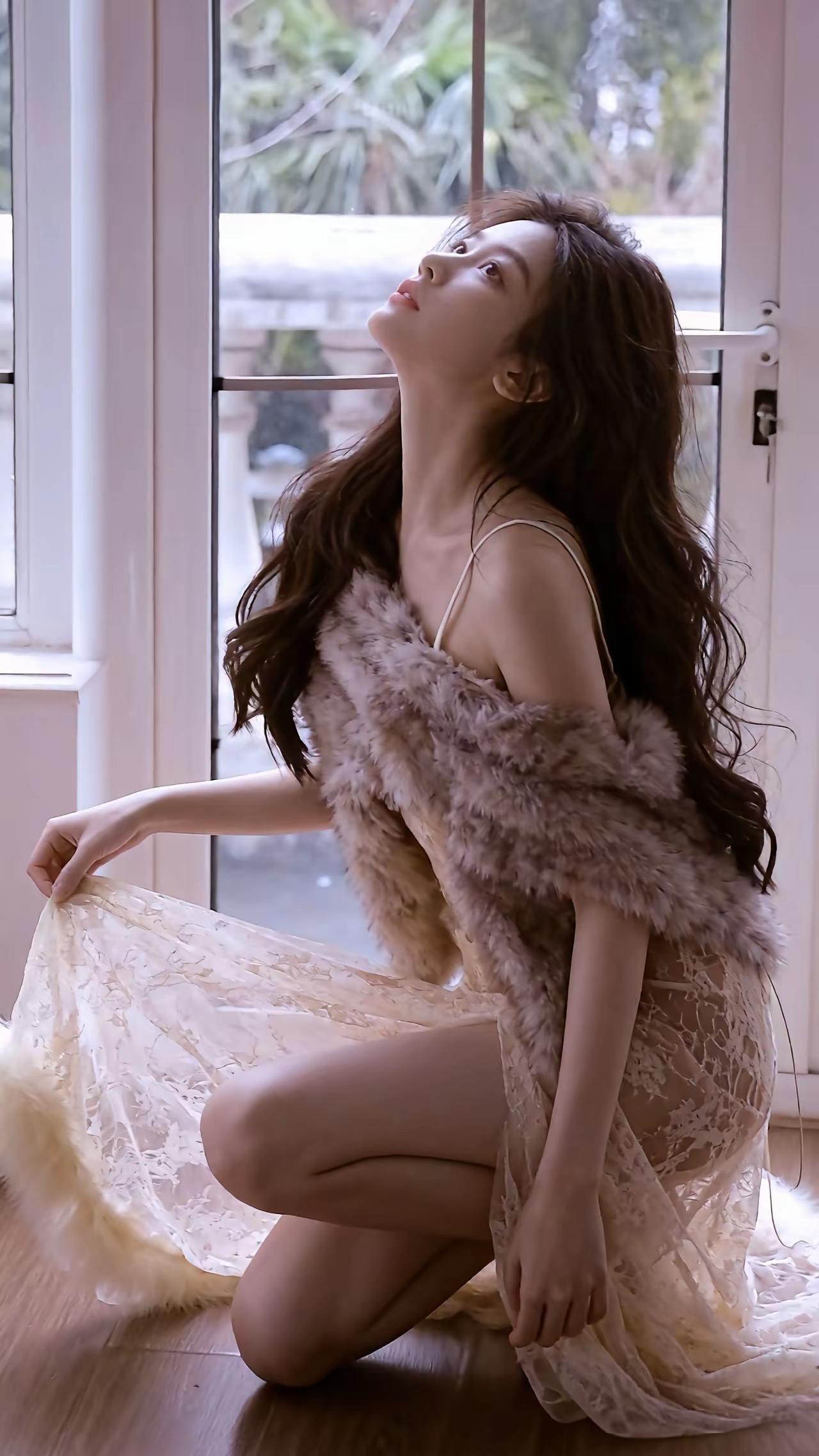 来看穿搭,纯欲慵懒风(适配居家写真、氛围打卡、小众创作) 核心单品:米色系蕾丝吊带裙 + 毛绒披肩 搭配亮点:蕾丝裙的细腻纹理和吊带设计,满是纯欲感;毛绒披肩一搭,慵懒又温暖。窗边光影一衬,就像 “轻罗小扇扑流萤” 般柔美松弛,日常拍点氛围感写真或者在家搞点小众创作,都很有味道,往窗边一坐就很有韵味。