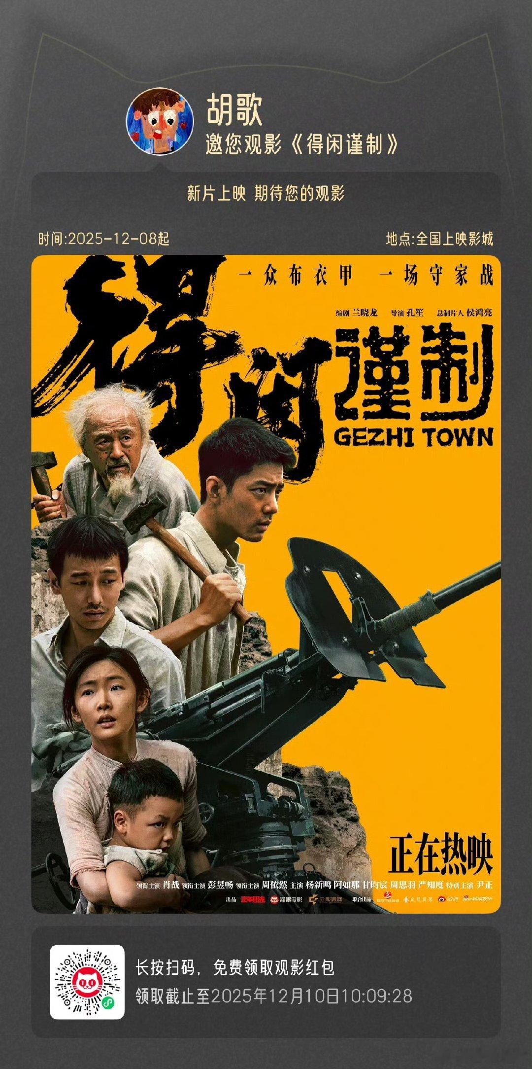 胡歌包场支持得闲谨制胡歌工作室卡点肖战生日胡歌包场支持得闲谨制! 胡歌工作室卡点肖战生日发文:“🎬 请大家看电影得闲谨制 这场守家之战,绝不后退! ”