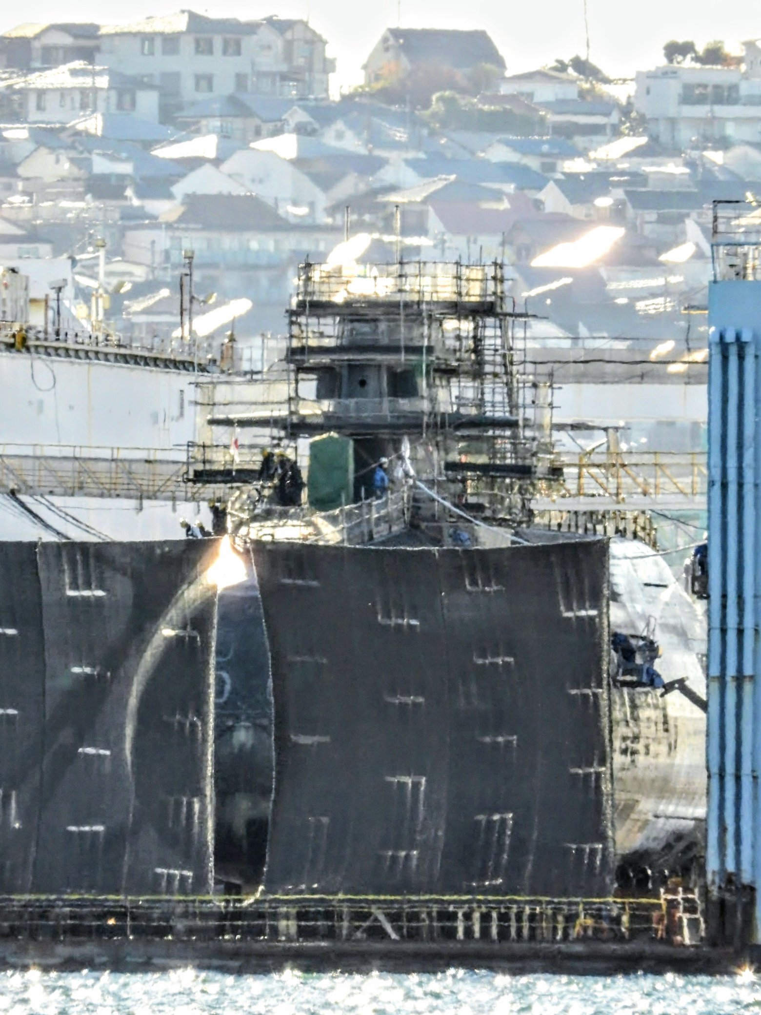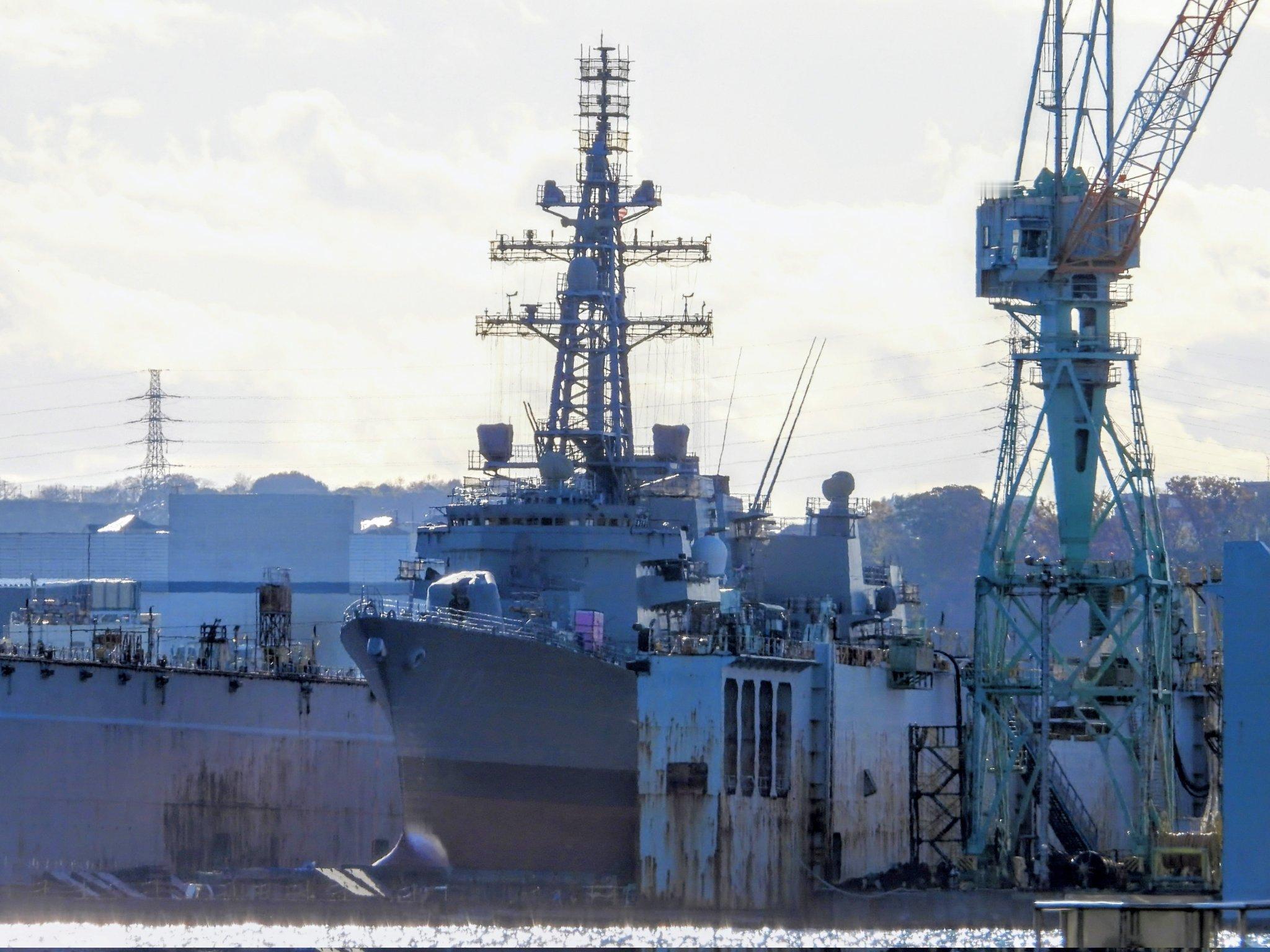 JMU横滨矶子近期在修舰艇——DDH-183“出云”——DD-110“高波”——ASE-6102“飞鸟”——不明型号潜艇