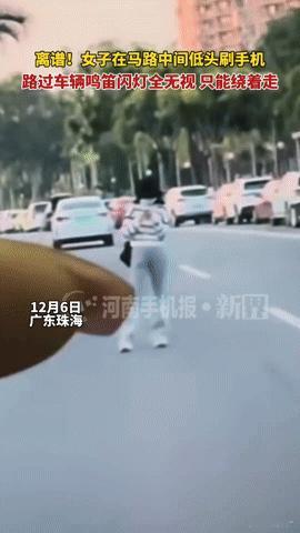 离谱!珠海一女子马路中间低头刷手机,车辆鸣笛闪灯全无视,网友:心太大了! “在车来车往的马路中间低头刷手机,任凭车辆鸣笛闪灯都纹丝不动,这操作你敢信?” 12月6日,广东珠海的一条马路上,一名女子的行为让路过司机捏了把汗。她站在马路中间,专注于手机屏幕,对周围车辆的鸣笛声、闪灯提醒毫无反应,过往车辆只能纷纷绕行。 虽说手机内容或许很吸引人,但马路可不是“安全区”。生命安全永远是第一位的,希望大家过马路时都能放下手机,把安全揣在心里,别让一时的疏忽留下遗憾。