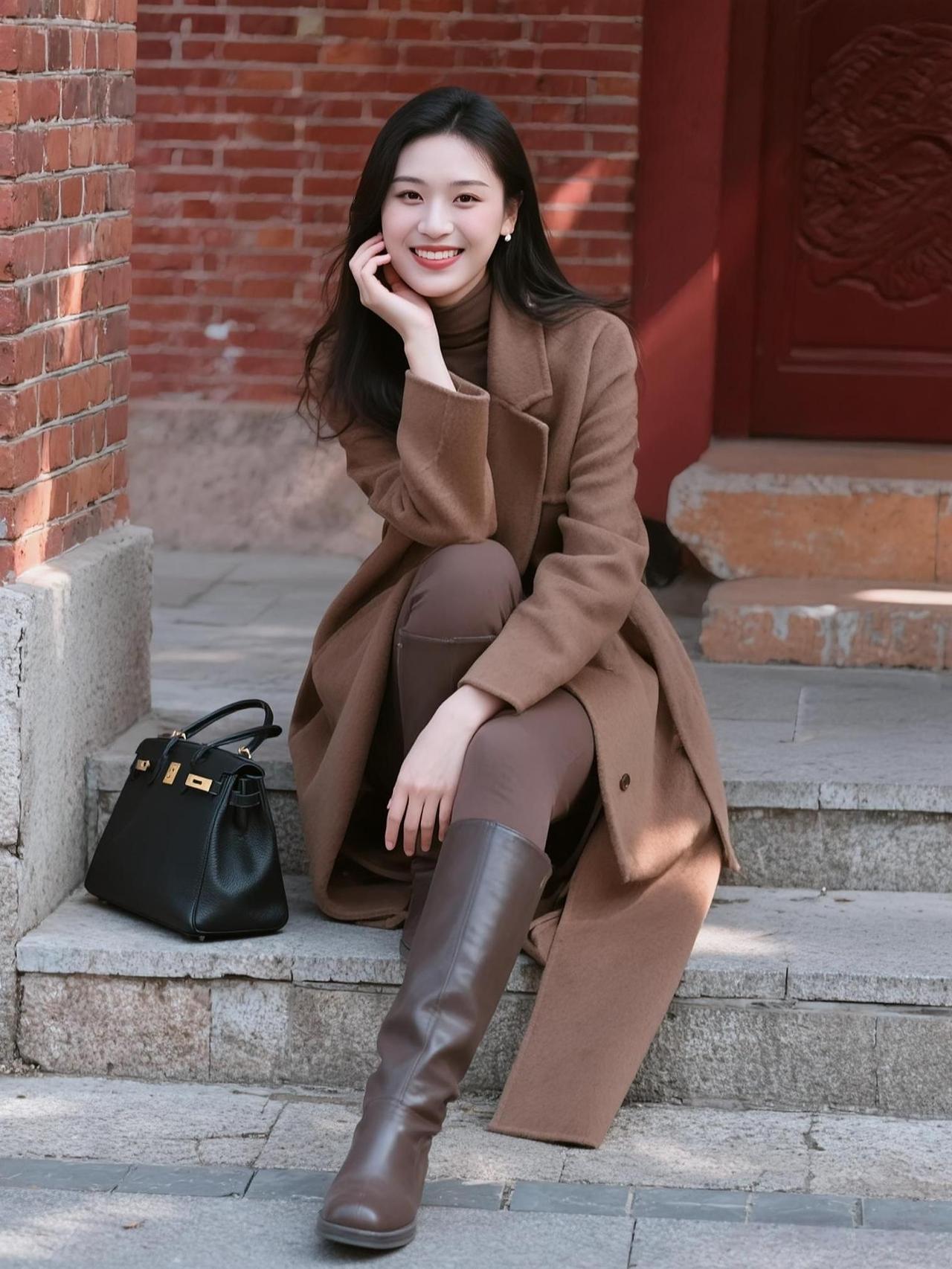 暖墙作底,花影作衬,一身绛紫松弛又温柔。风轻轻掀动发梢,连日常穿搭都浸满了春日的松弛感。