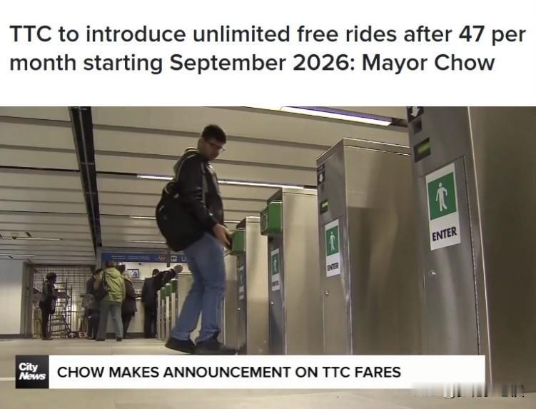 多伦多公交"封顶免费":每月刷满47次,后面全免! 多伦多市长邹至蕙今天表示,从明年9月起,多伦多公车局(TTC)将引入一项“封顶票价”(fare capping)制度:当乘客在一个月内乘车次数超过47次后,之后的所有乘车将自动免费。 不过,该项调整仍需在2026年市政预算案中经由投票通过,方可正式实施。 邹至蕙在周一上午表示:“像你平时一样刷手机、Presto卡或者信用卡。一个月内刷满47次后,之后的每一趟车都会自动免费。不需要填写任何表格,也不用额外注册,系统会自动生效。” 目前,TTC 成人月票价格为每月156加元,单次票价为3.30至3.35加元,,47次乘车基本相当于‘打平’月票成本。 但邹至蕙表示,市府的最终目标是是到2027年,将免费封顶门槛进一步下调至每月40次乘车。 她解释说:“如果他们真的用满47次,那是正好打平。但有些人根本用不到47次,那就等于在多花钱,这是不公平的。也有些人使用次数远超47次,但他们一开始可能负担不起月票的前期成本。” “这样一来,你不会被‘锁死’在一张可能用不完的月票里,但同时又能避免被过度收费。” 目前,Hamilton、约克区(York Region)以及渥太华等多个公交系统,已经在实施类似的“票价封顶”制度。 邹至蕙表示,这项从明年9月开始实施的‘47次后免费’政策,预计将使市府每年增加约350万加元的成本,但她强调:“这在市府预算中是可以承担的。” 她还补充说明:“为什么不直接一步到位降到40次?因为直接降到40次对财政冲击太大,我们需要循序渐进地推进。”