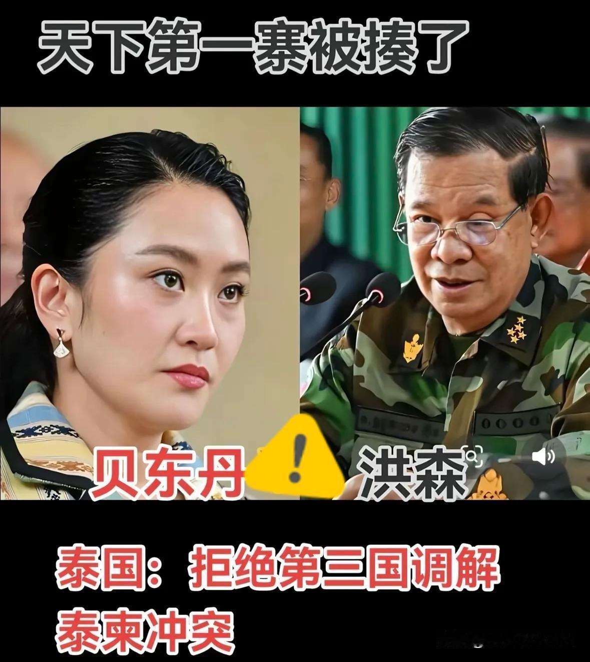 泰柬冲突升级!贝东丹icon硬刚洪森icon,泰国icon直接拒绝第三方调解。