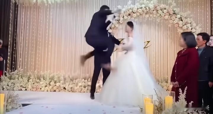 【小伙子怒踹新娘】在新婚仪式上,主持人问新娘还满意吗?新娘回答说:“给了我38万8的彩礼,要是以后他的父母能够帮我带孩子,洗衣服,做饭,还要给我弟弟买辆车……,就满意了。” 小伙子,不忍了,直接跳了起来,怒踹新娘,把新娘踹下台阶!婚不结了,太贪了! 婚姻 婚礼现场砸场子