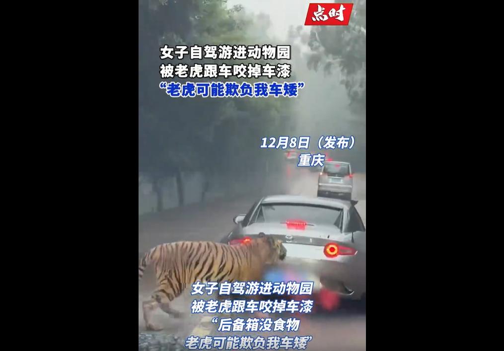 12 月 7 日重庆一女子,开着小车进动物园猛兽区,结果被老虎盯上一路跟,还把车漆咬掉了。 女子说园区让自驾,可能因为自己车矮才遭 “青睐”,网友还玩梗调侃 “马自达像马才被咬”。 这位姐的心是比篮球场还大啊! 敢开小车闯猛兽区,老虎跟车咬漆都没慌,要是老虎再 “热情” 点,估计就得给老虎当 “乘客” 了,这安全意识真是 “佛系” 到家! 动物园也挺有意思,允许自驾进猛兽区,却没考虑车矮容易被老虎 “围观”,这管理跟没装 GPS 似的,全靠运气没出大事,下次是不是该给小车发 “防虎套餐”? 网友的梗更是笑不活,拿车品牌开涮说 “马自达像马”,不知道的还以为老虎成了 “车评人”! 不过玩笑归玩笑,猛兽区可不是脱口秀现场,不管开车的、管园的,都别把安全当 “段子”,不然下次可能就笑不出来了!