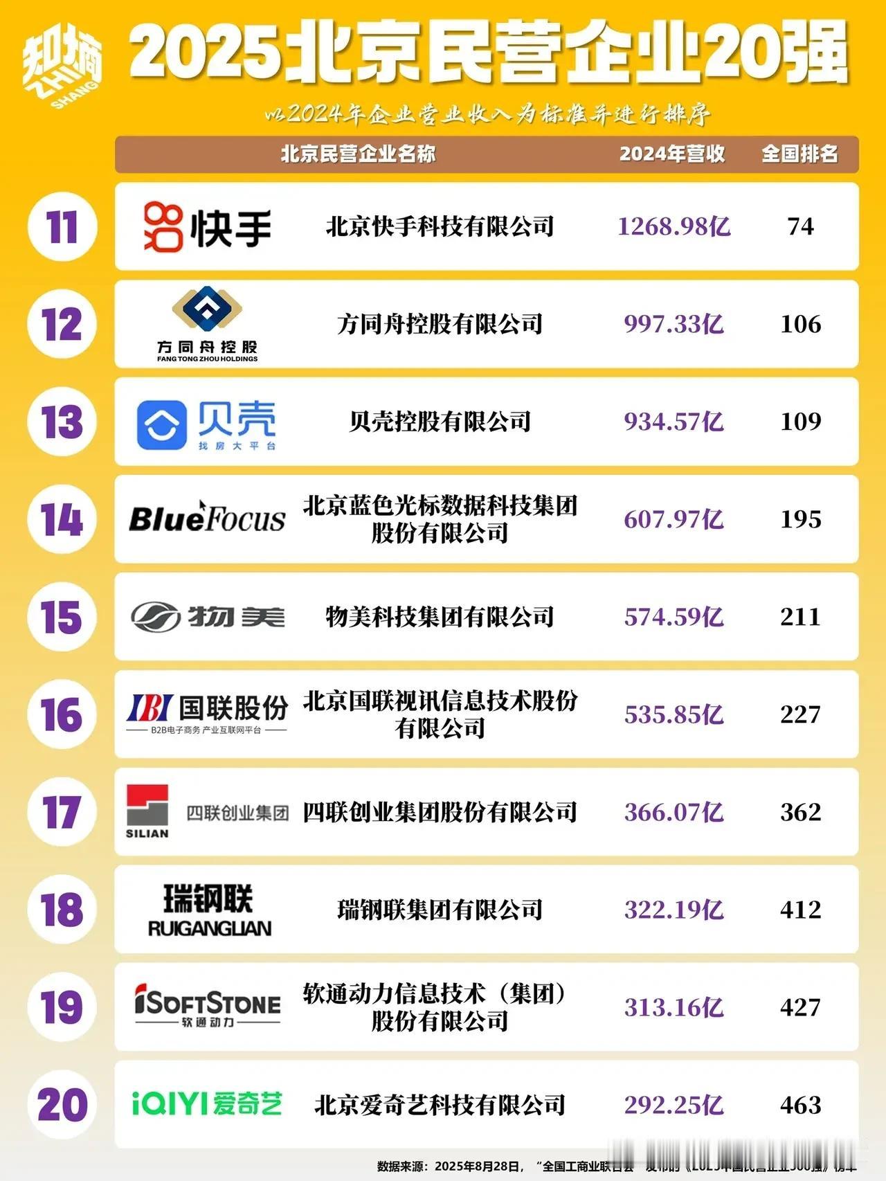 看下图,不知是哪位细心的网友整理的2025北京民营企业20强。京东去年营收位列第一,达到1.16万亿,没想到的是,联想竟然排在第二位,印象中美团或者是小米应该排在第二。联想的营收是京东的一半,小米和美团的营收差距在缩小。不过这份榜单中没有把字节算进去。字节去年的营收是1.13万亿,跟京东比也是旗鼓相当了。