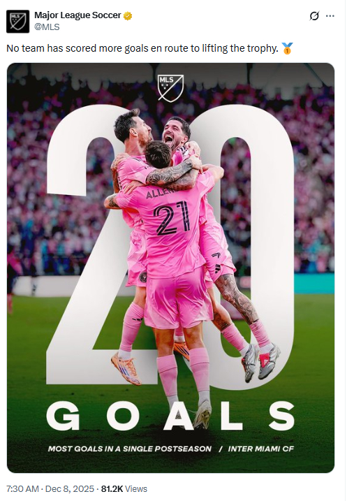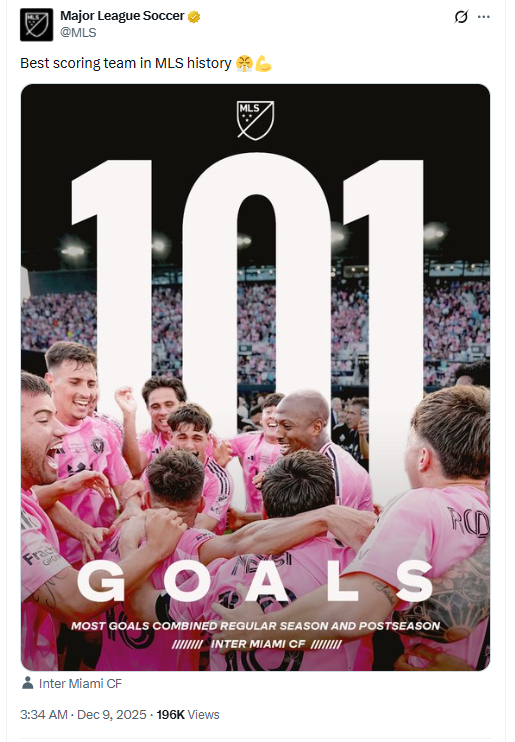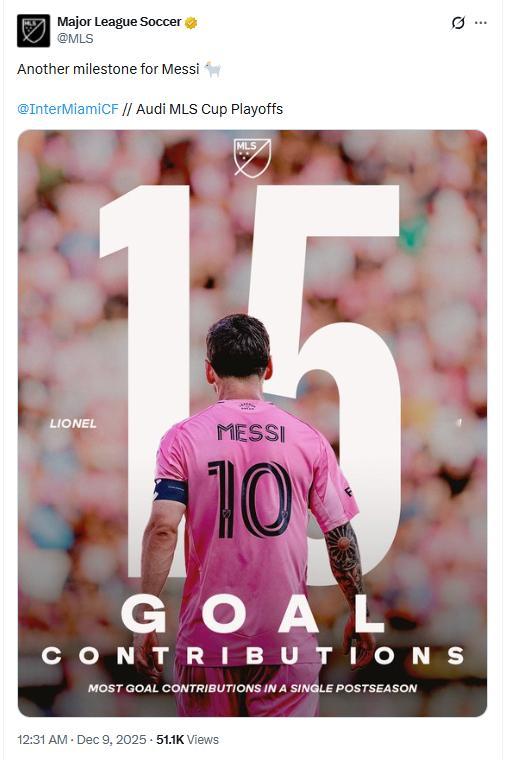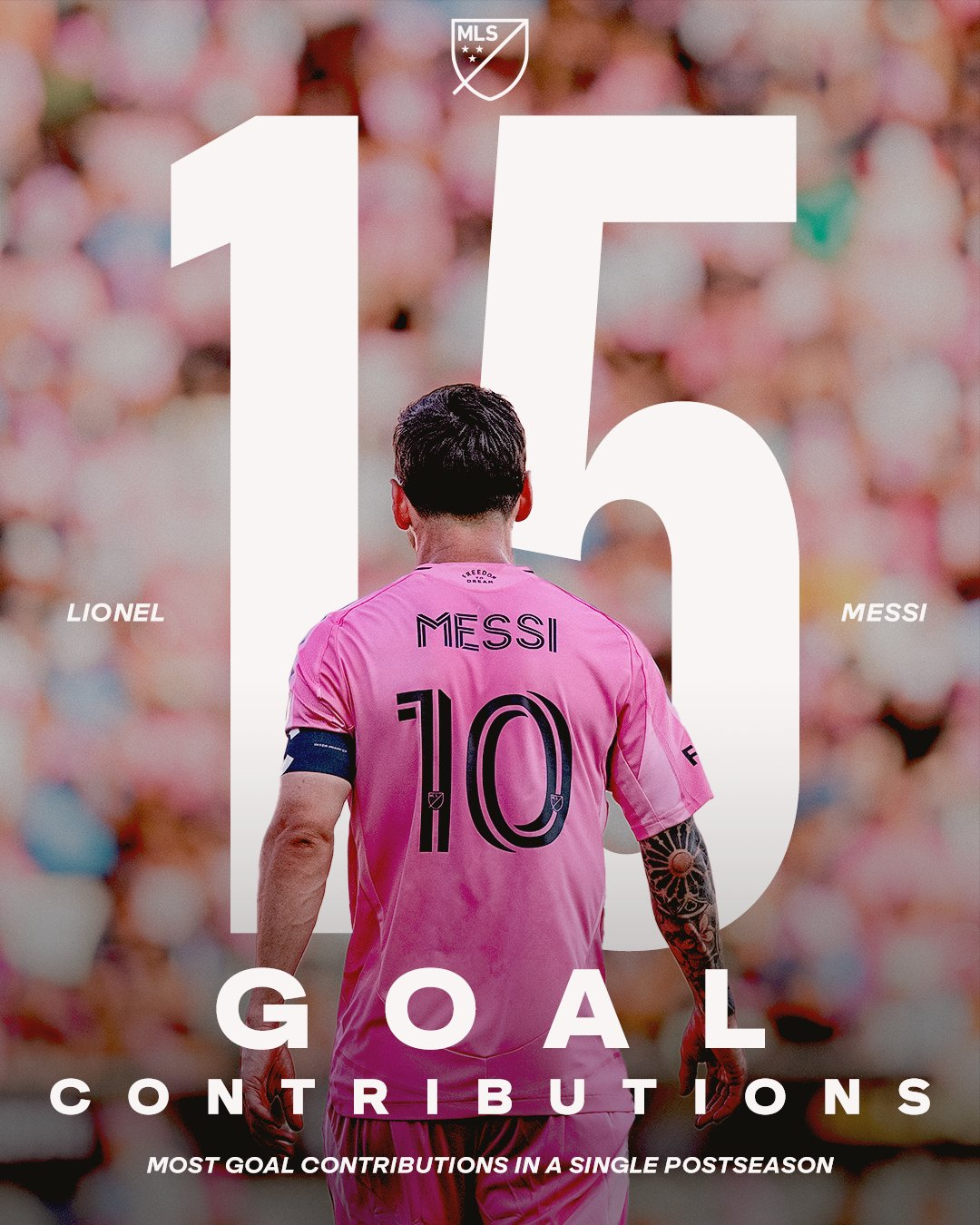 【梅西以绝对核心助迈阿密国际创造美职联新纪录】1️⃣美职联赛季(包括季后赛)101球;2️⃣美职联季后赛20球;📝其中,美职联常规赛~梅西贡献29球+16助攻进球贡献率56%;季后赛~梅西贡球献6球+7助攻,进球贡献率65%;美职联赛季(包括季后赛)进球贡献率57%!💥阿连德季后赛9球,也创造了新的纪录!🐐多说一句,梅西对球队的影响力远远不是数据可以展现的!梅西迈阿密国际首夺美职联总冠军