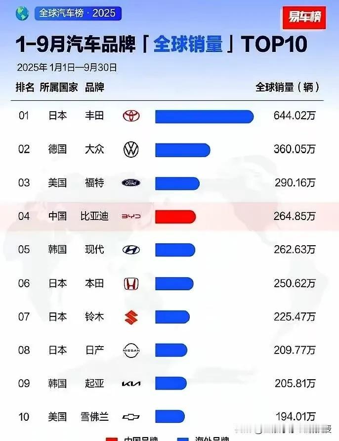 日经中文网近期多篇头版聚焦中国汽车,其中11月27—28日中山淳史专栏《中国燃油车出口将反超日本:难以接受的现实》直接显示日本现在对中国汽车出口规模日益庞大将对日本汽车出口产生巨大冲击的担忧。2025年前9月中国汽车出口495万辆,约为日本306万辆的1.6倍。 看下图,就是《日经中文网》11月的头版主图,中国港口待出口的几千辆新能源汽车密集排列,象征着中国新能源汽车的出口规模非常庞大。 日本现在最具竞争力的汽车品牌就是丰田,丰田的全球化销量目前是比亚迪的2.5倍,但是中国的新能源汽车,包括小米在内的新势力,目前的战略定位都是“走出去”。比亚迪今年在欧洲的销量暴涨,尤其在英国的销量暴涨了八倍,销量的增速还在持续。 按照中国的新能源汽车品牌出海的速度,明年就有可能超越丰田的全球销量。日本曾经引以为豪的被认为是不可替代的,最重要的民族产业也就此落幕了。