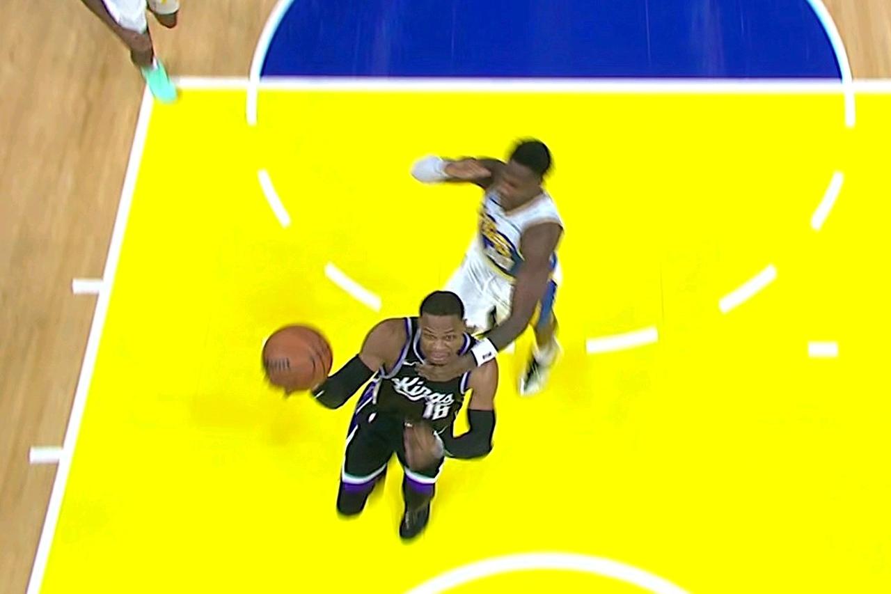 马瑟林这防守动作太危险了! 威少倒地直接懵了!在国王挑战步行者的次节比赛中发生惊心动魄的一幕:老将威少持球突破准备上篮,前面已经没有防守人了,马瑟林无奈追身防守威少,真的是劈头盖脸搂脖子,直接把威少整懵了,躺地上缓了一会儿,不得不说,马瑟林的防守动作可以强硬,但是这动作有点多余,就是冲着人去的,太不应该了,你可以把威少揽下来,但是搂脖子很危险,裁判看了回放之后,果断判罚马瑟林1级恶意犯规,两罚一致!威少作为赢你征战多年的老将,早已看淡了一切,他只想好好打球,脾气还是很好的,并没有和马瑟林斤斤计较! 威少 威少速度