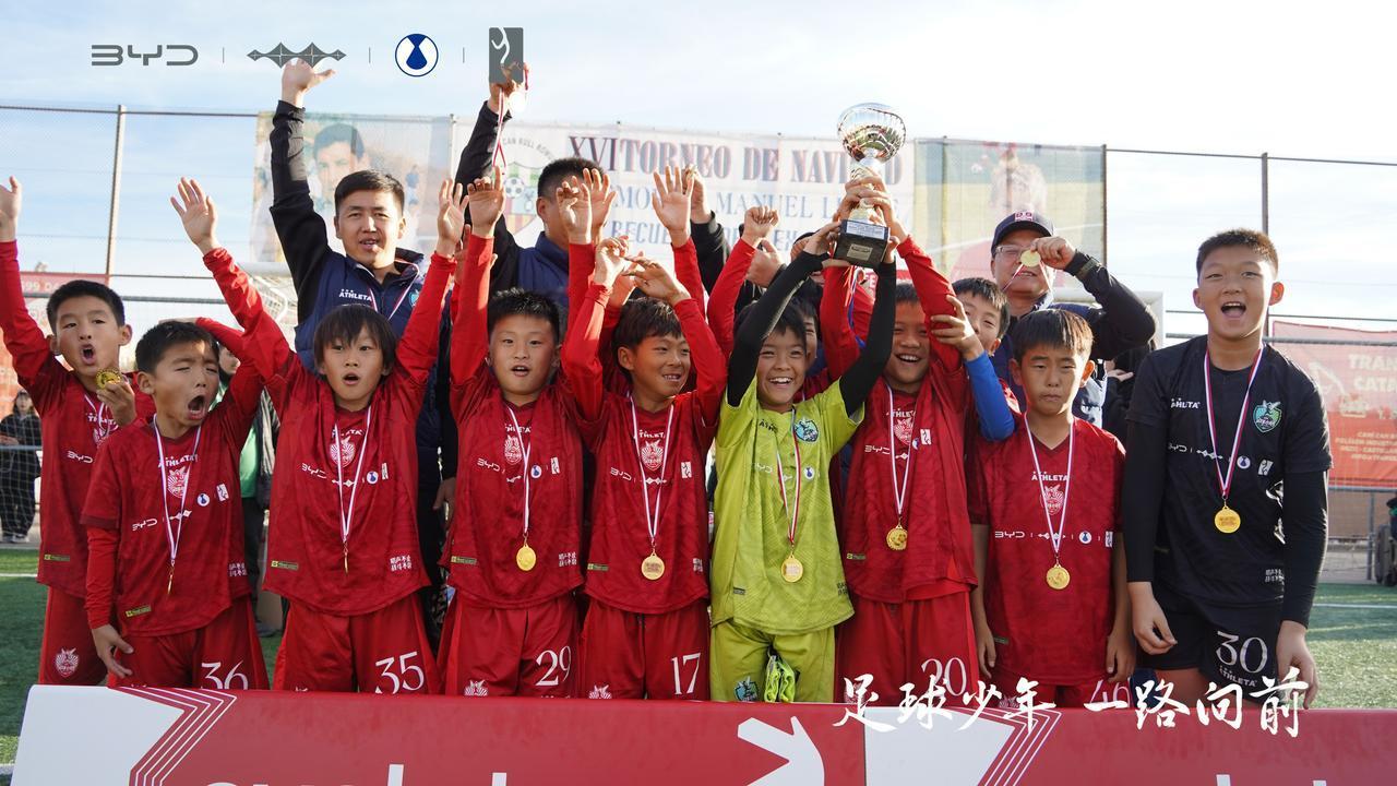 中国足球小将战胜豪门青训西班牙人队,突破历史,首进四强! 从七年前初探曼努埃尔杯赛,到今日战胜强敌创造历史,比亚迪坚信只要一直奔跑,总有一天我们会跑向世界!