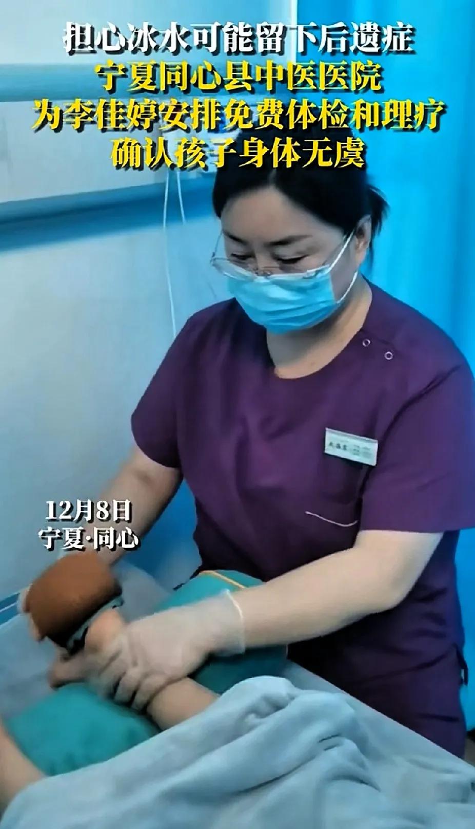 报喜了,报喜了! 宁夏3岁舍己救人的李佳婷,网友都担心冰水可能会给她留下后遗症。这不,宁夏同心县中医医院,已经为李佳婷安排了免费体检和理疗,经过检查,孩子身体无虞(指没有灾祸与烦扰)。 医生表示:受的寒气,会通过内服中药,外用中医拔罐、艾灸、药浴等方法把寒气逼出来。 为暖心中医院点赞,讲真女孩子最怕落下寒症,会影响一生。这种真实可靠的关心我们的小英雄,很暖心,有温度! 希望人间处处都美景,人人都善良!向英雄致敬,向好人学习!
