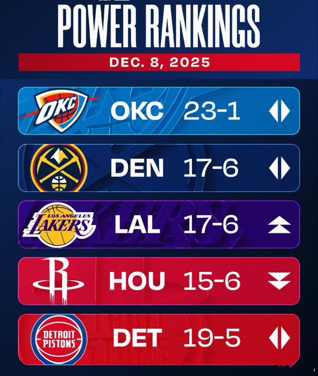 NBA官网新出炉的第八周实力排行榜:4 休斯顿火箭队上周排名:3↓战绩:15胜6负进攻效率:121.4(联盟第4)防守效率:110.7(联盟第2)净效率:+10.8(联盟第2)比赛节奏:27火箭队周五在阿尔佩伦·申京(因病缺席)缺阵的情况下取得一场高质量胜利,投篮命中率达59%,并实现了对太阳队的2胜0负。但随后第二天在达拉斯(申京与史蒂文·亚当斯均缺阵),他们打出了赛季最差的防守表现。三点观察:1. 尽管火箭队继续保持着近30年来最高的进攻篮板率,但他们在球权争夺上的优势已不如上赛季。在申京缺阵的两场周末比赛中,失误成为一个问题(累计43次),火箭队在申京在场时每百回合失误数比他不在场时少1.9次(15.2比17.1)。2. 火箭队的三分出手频率(32.7%)继续排名联盟垫底,他们周三战胜国王的比赛是本季唯一一场全队三分出手占比低于20%的比赛。输给独行侠仅是本赛季第二次(第一次是输给掘金)他们在两分球和罚球得分上均落后于对手。3. 在达拉斯13分的失利也是火箭队首次在最后五分钟分差超过5分的比赛中落败。他们的攻防效率仍居联盟前五,场均净胜分(+10.6)仍高居联盟第二,与一支17胜4负球队的数据相符。后续赛程:在达拉斯的失利也标志着火箭队本赛季首个“七天五赛”密集赛段的结束。他们输掉了本赛季前两次背靠背赛程的第二场,但接下来11天他们仅有2场比赛,与快船的首次交锋将在周四晚进行。下周赛程:主场对快船休斯顿火箭