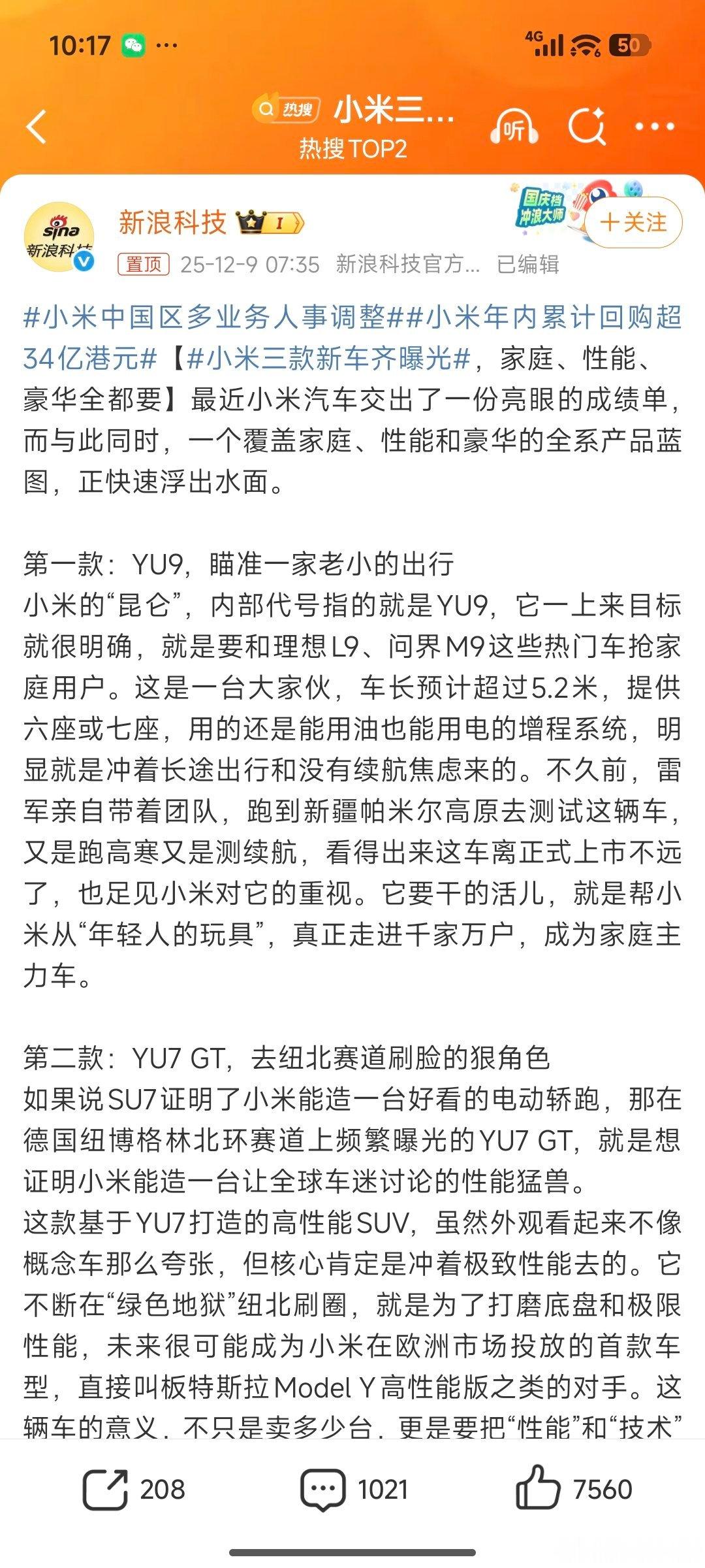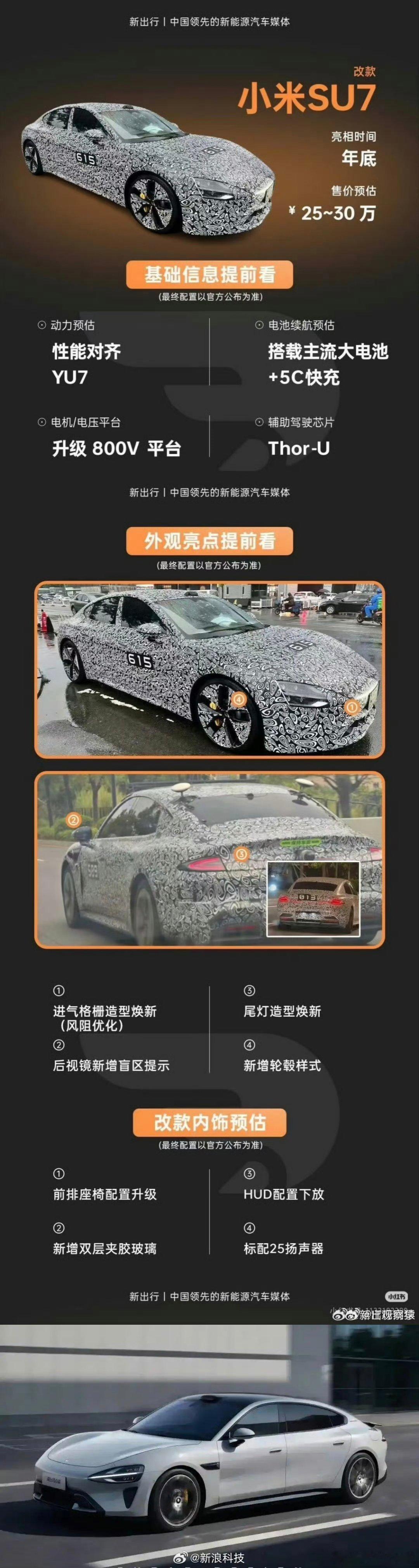 今天再次讲到了小米YU9、小米YU7 GT以及小米SU7改款,之前其实也有一些小总结出来,我跟新浪科技老师的图贴到一起,大家上下看看小米三款新车齐曝光小米汽车