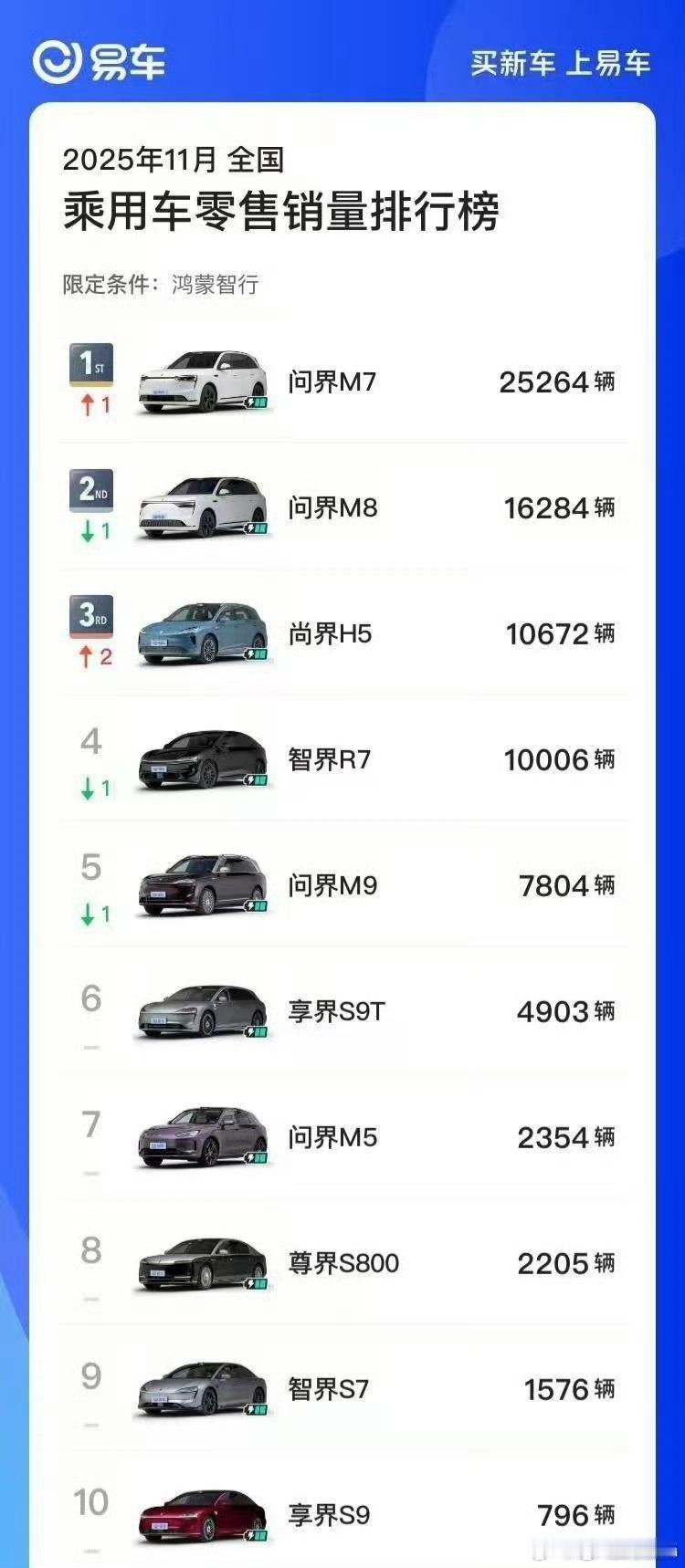 11 月份智界R7又卖了一万,还真好起来了啊,可以的。最离谱的是尊界 S800,这玩意均价近百万,卖了 2205 台,只比问界M5 低 100