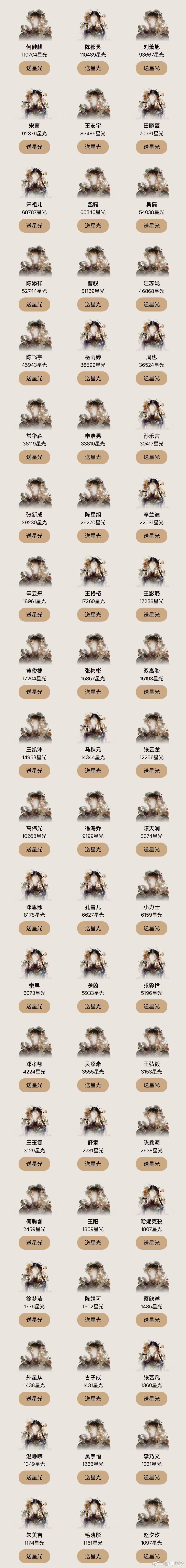 星光大赏投票排名星光大赏星光值排名 12月9日,2025腾讯视频星光大赏投票排名,按星光值高低排序前10为:时代少年团、刘宇宁、丁禹兮、赵露思、鞠婧祎、龚俊、孟子义、白鹿、檀健次、李昀锐。星光大赏投票