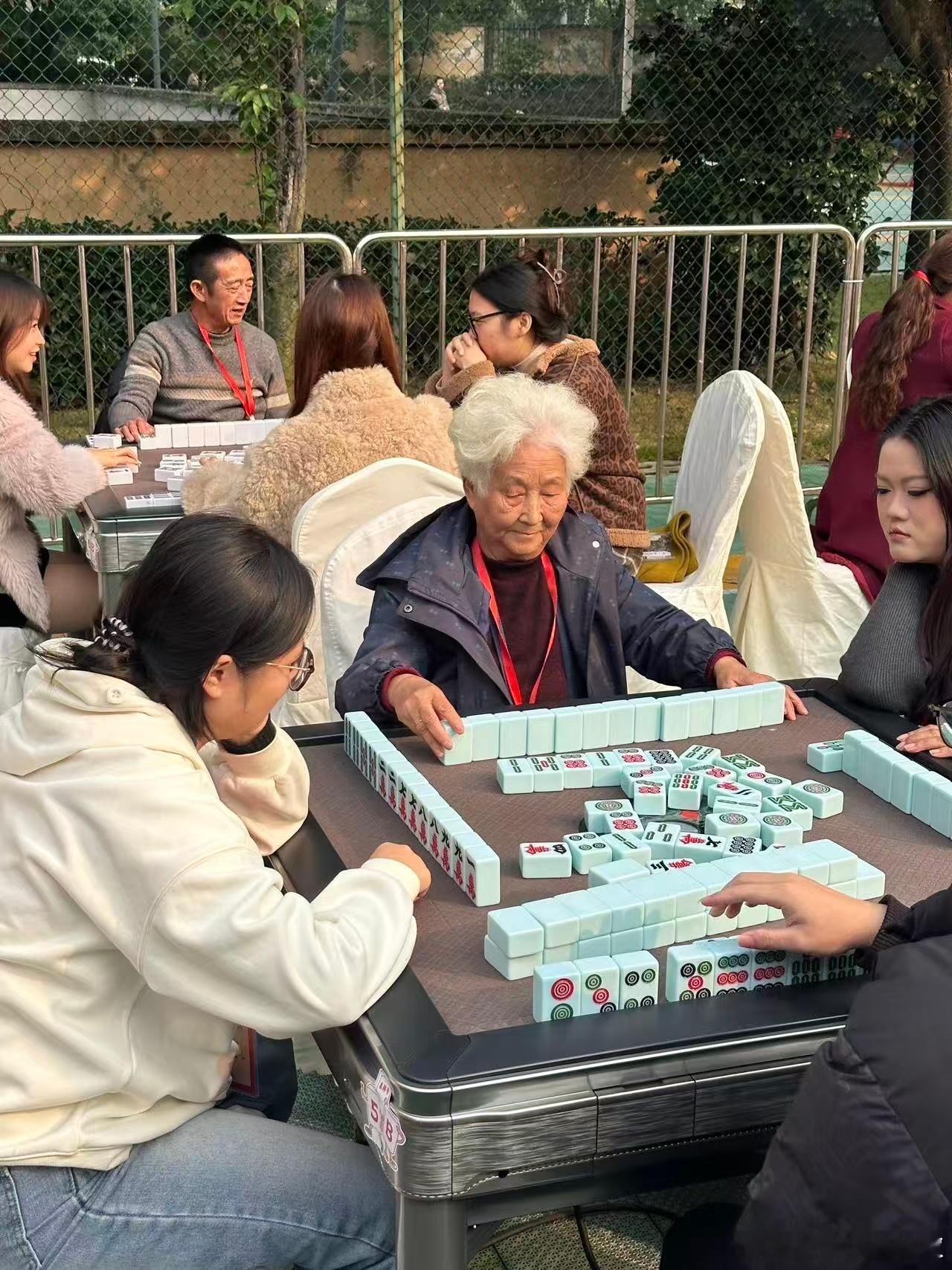 重庆麻将比赛聚集了多少川渝神人 楼下支棱麻将桌市集氛围感拉满,敷膜摸牌、边剥毛豆边打牌,还有摆摊考公的NPC,抽象又鲜活,川渝松弛感狠狠拿捏🤣