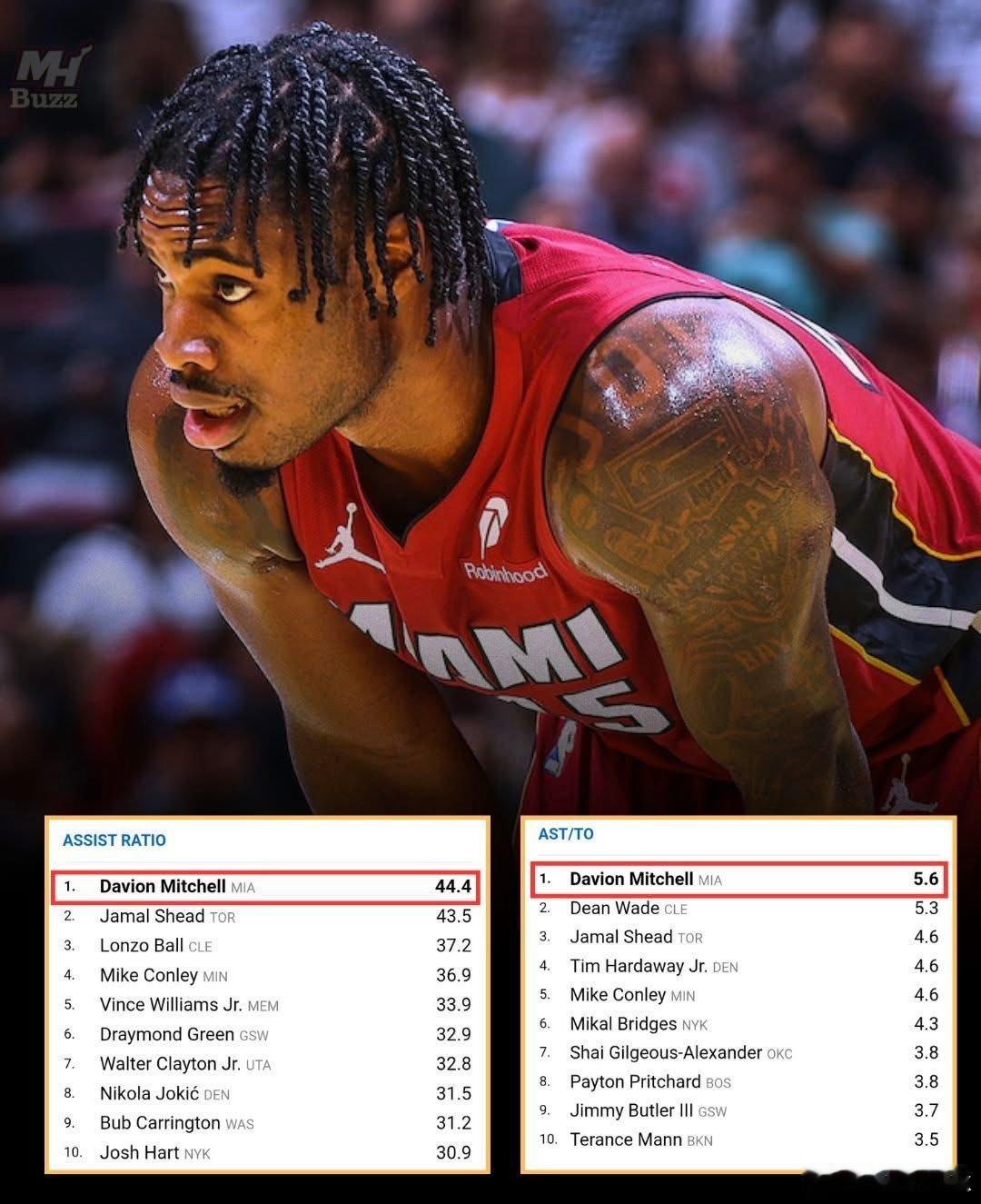 米切尔目前在助攻率和助攻失误比方面领跑全联盟,热火进攻的发动机和持球核心。新赛季