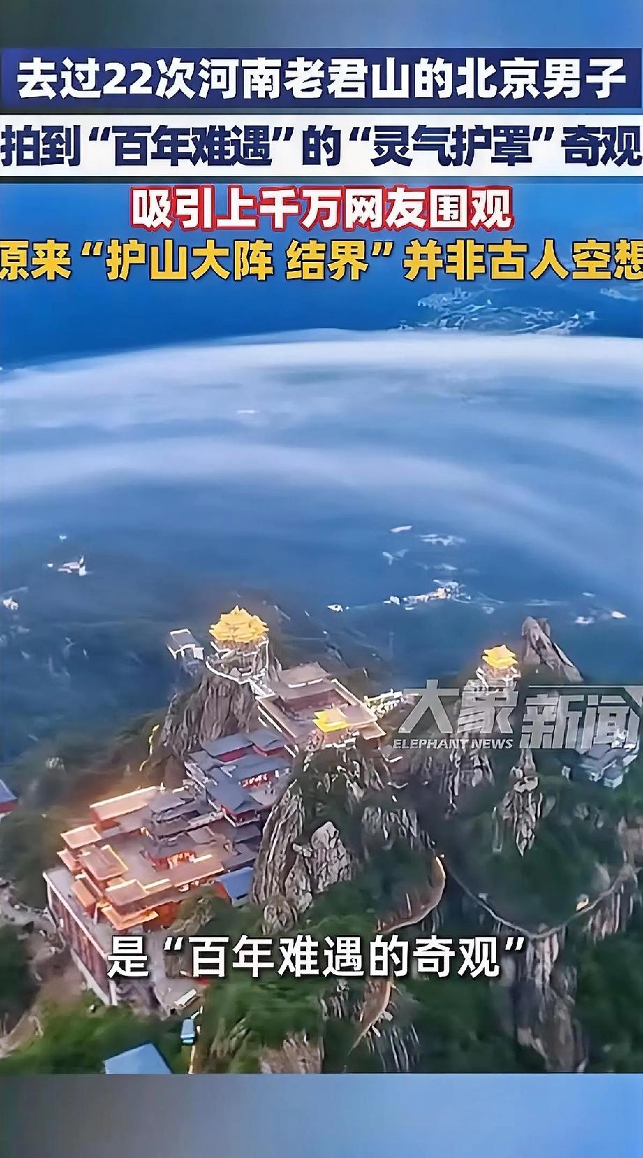 一位去了22次河南老君山的北京游客,这次终于拍到了“百年难遇”的奇观——山间云雾缭绕,形成一个圆形的“灵气护罩”,把山顶整个罩在里面,像极了仙侠剧里的“护山大阵”。 视频发出来,吸引了上千万网友围观。大家惊叹:原来古书里说的“结界”真不是瞎编的,大自然居然能造出这么神奇的景象。 看来有些传说还真有现实依据。有时候最美的风景,就藏在最深的坚持里——去了22次,终于等到了这一刻。
