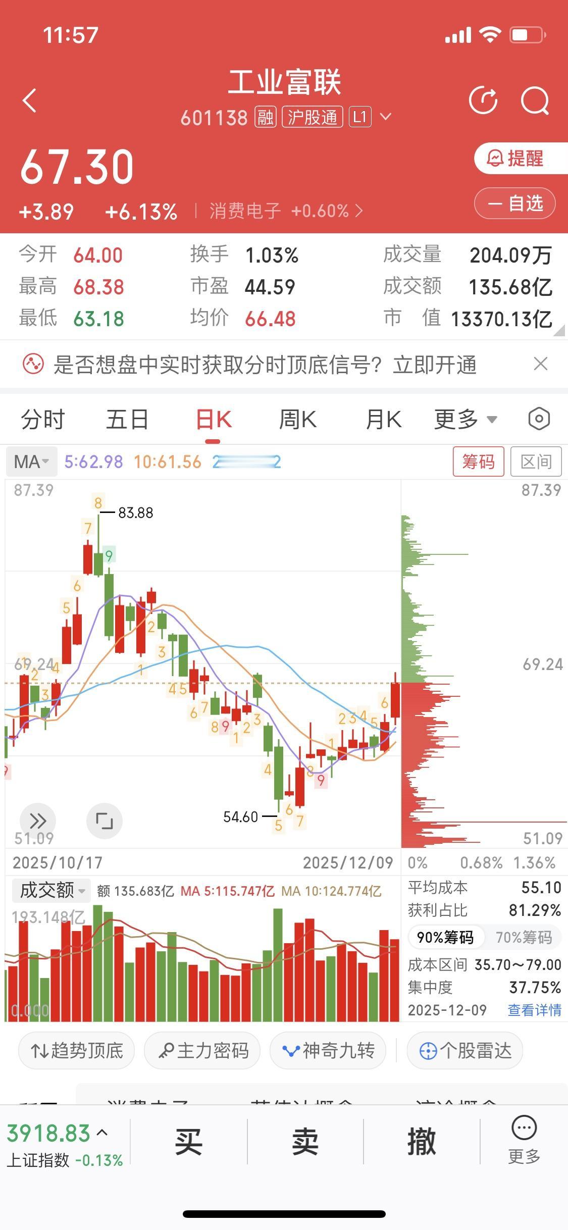 12月9日的股市有点意思,消费电子代工指数盘中强势拉升,其中工业富联表现超亮眼,直接涨超6%。同期的环旭电子、领益智造等也有不同程度涨幅,但和工业富联一比,就略显逊色了。 从主力资金流向来看,早盘主力资金净流入电子等板块,工业富联主力资金净买入超9.91亿元,位居个股首位,这得吸引多少股民目光。反观航天发展,遭净卖出超6亿元。这一涨一跌之间,真是几家欢喜几家愁。看来12月9日工业富联这波大涨,背后是资金的强力推动啊。