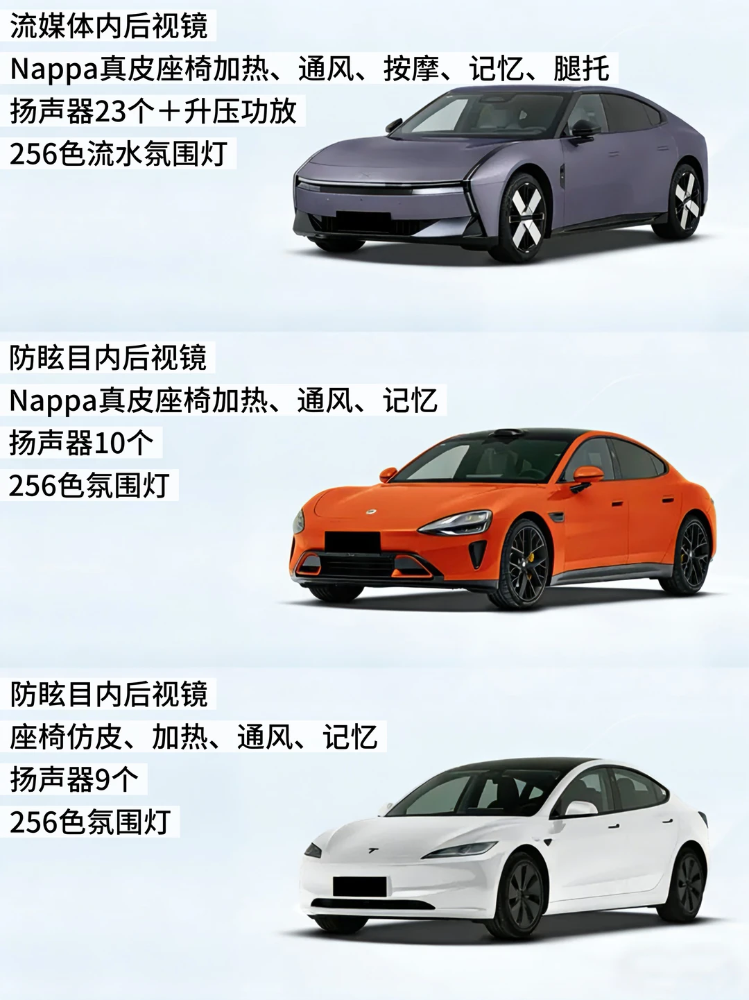 🔜三车看下来,P7的性价比很高适合对配置和智能化有高要求的朋友,SU7则是适合对颜值比较看重的朋友,Model 3则是适合对电车品牌和三电有需求的朋友。以上就是个人一点浅见,有不同意见的朋友,可以评论区留言讨论。