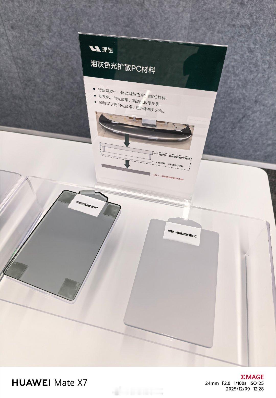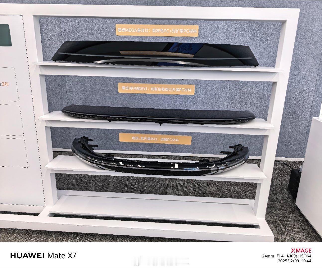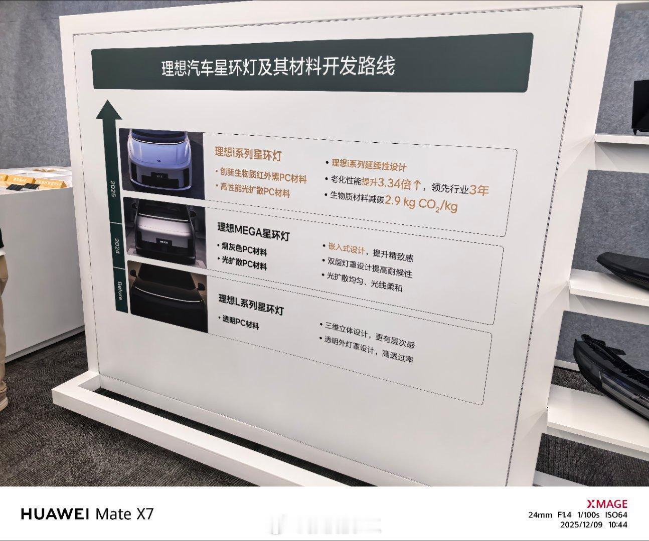 可透红外光的黑色材料,减少吸热来提升寿命。三代星环灯采用了不同材料,代表着技术的不断进步。提升点是一体设计、扩散率(扩散角度和匀光性)和透光率。理想材料研发成果大盘点