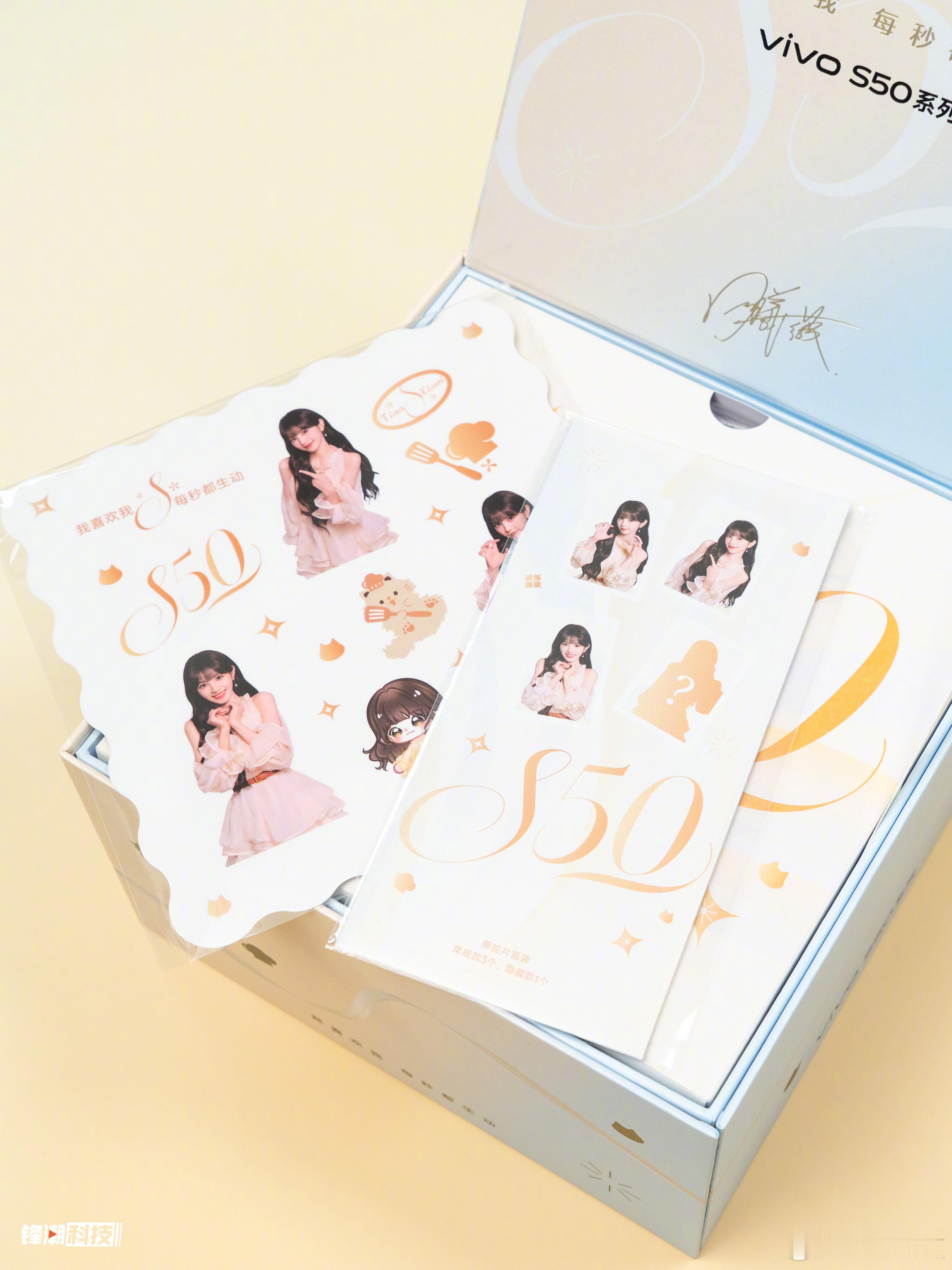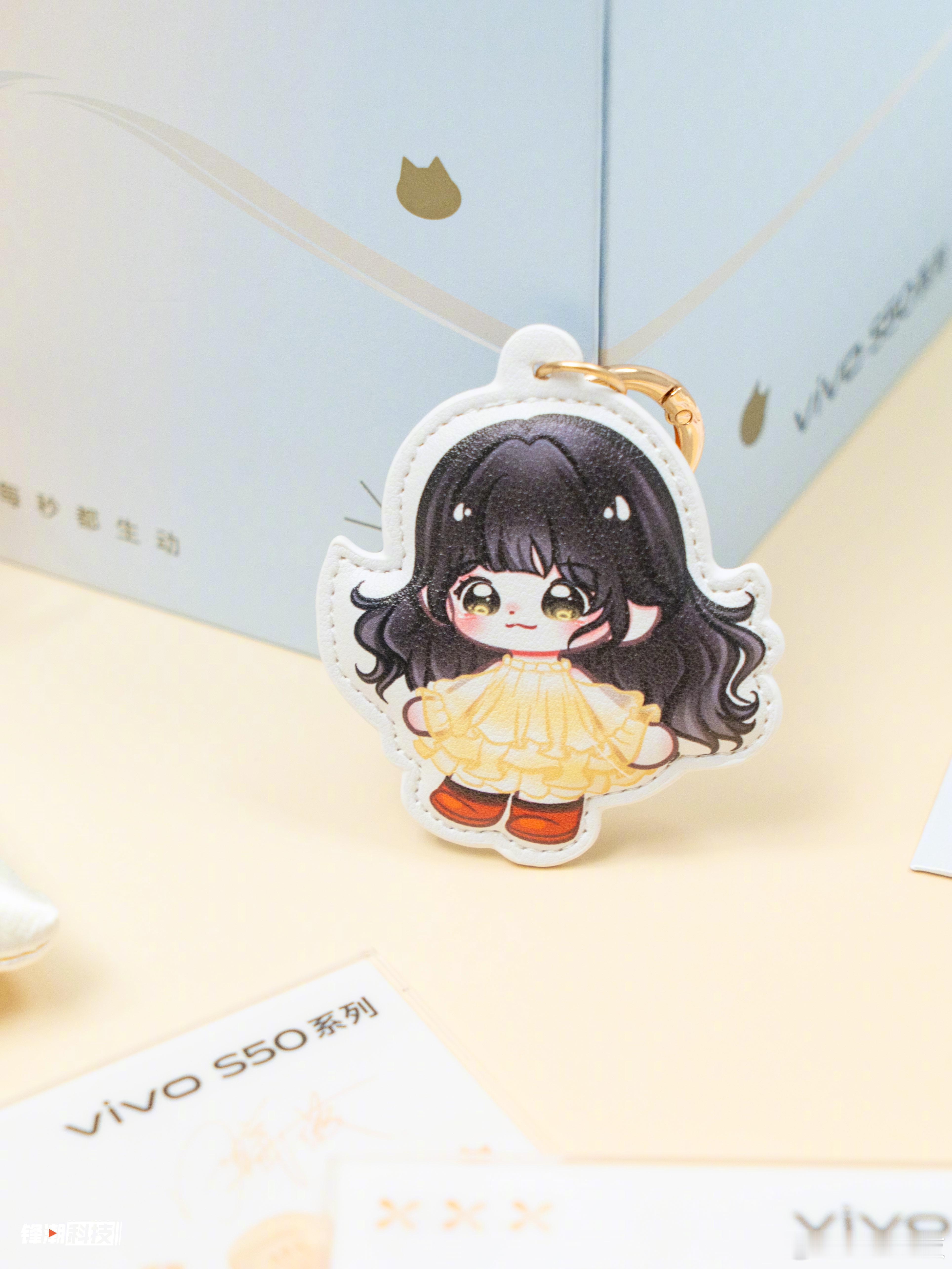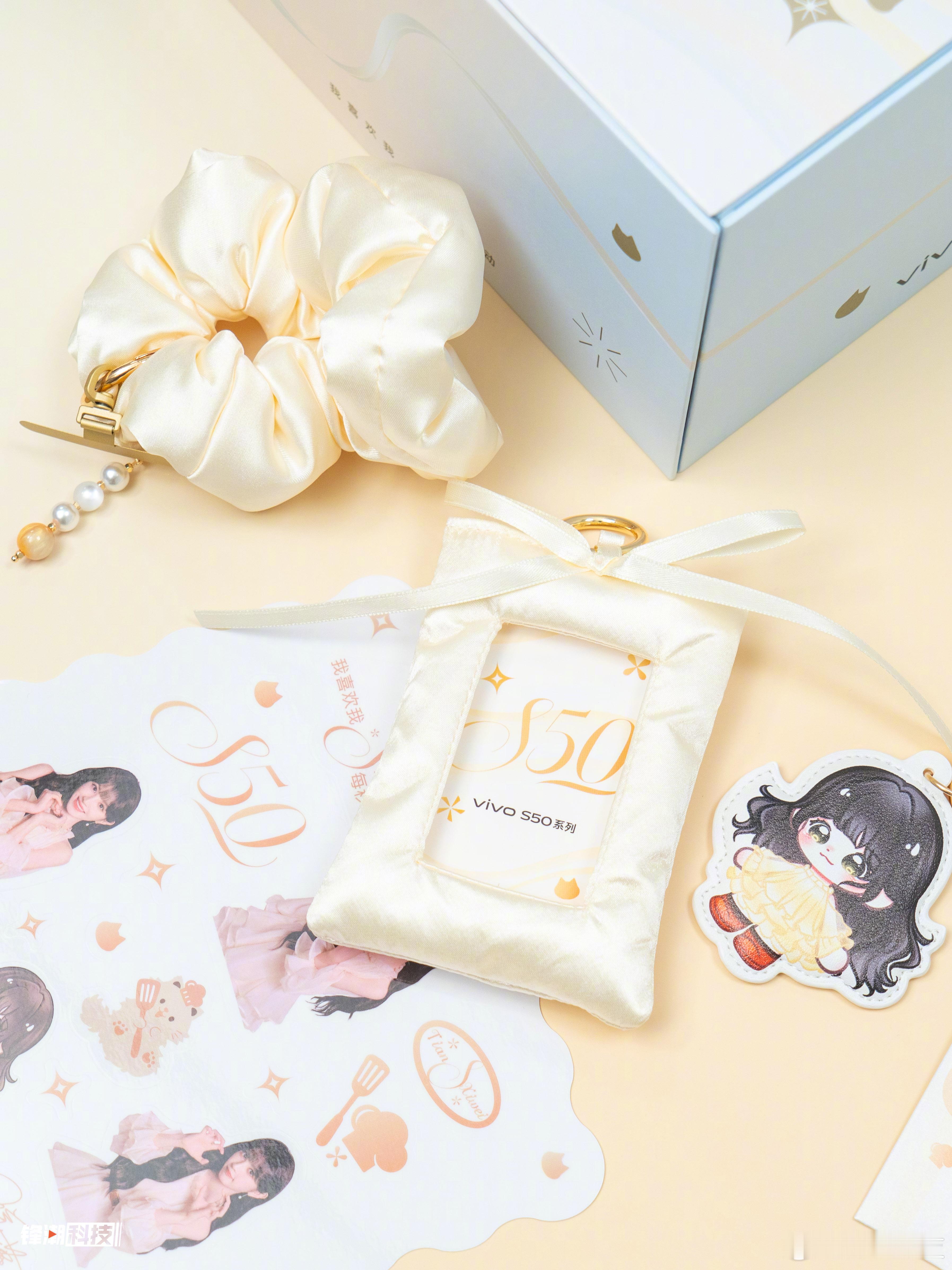vivo S50系列田曦薇限定礼盒。丝绸包、亚克力立牌、皮质挂件、贴纸、发圈、卡套~