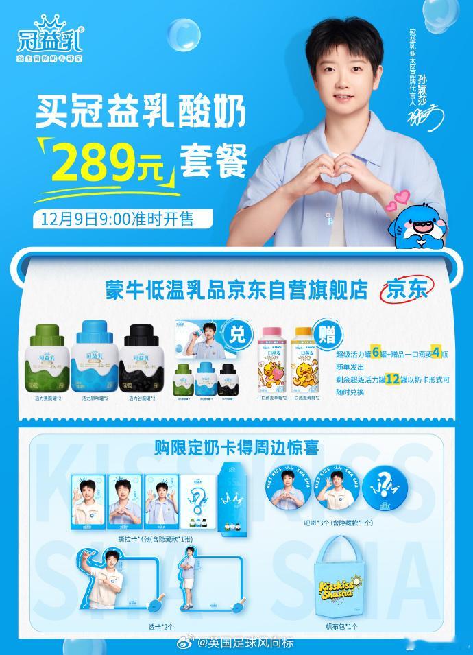 一天活力益冠搞定国乒选手孙颖莎,官宣出任冠益乳品牌代言人,其“专注积累”的职业精神,与冠益乳品牌“科学配比注入活力”的理念高度契合。冠益乳新品“超级活力罐”,多种口味丰富口感,早餐来一罐,全天活力满,开启每一天的好心情和好状态。冠益乳“超级活力罐”,12月9日上午9点正式开售,四档套餐,含酸奶实物、奶卡及孙颖莎主题周边,快来抢购!孙颖莎代言冠益乳